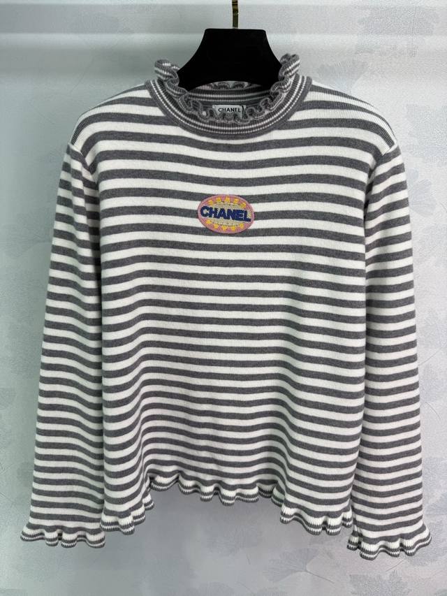 Ch*25 Early Autumn New Striped Knit Long-Sleeve Top. Classic horizontal stripe design with a 3D logo on the chest, exuding brand awareness. Made of soft cotton fabric, perfect for spring and autumn. Can be worn alone or as a base layer. Pairs well with jeans and skirts. Stripes are versatile, casual yet stylish, a must-have for everyday wear, easily elevating your outfit! 2 colors, 3 sizes: S, M, L, T226B. DDD