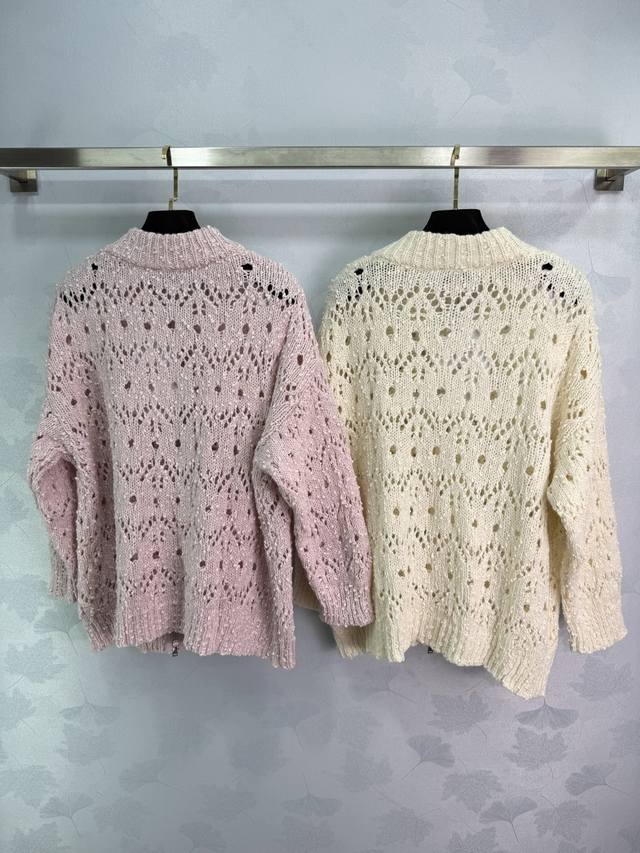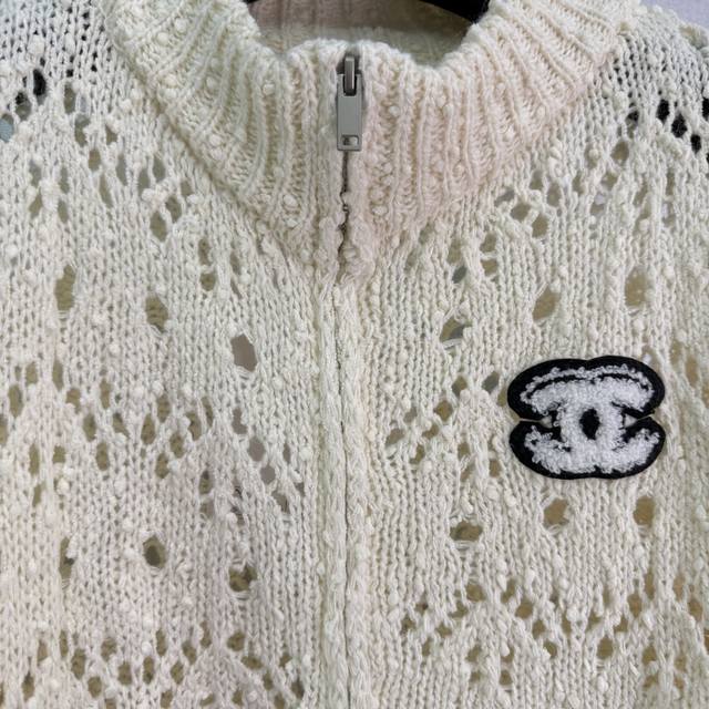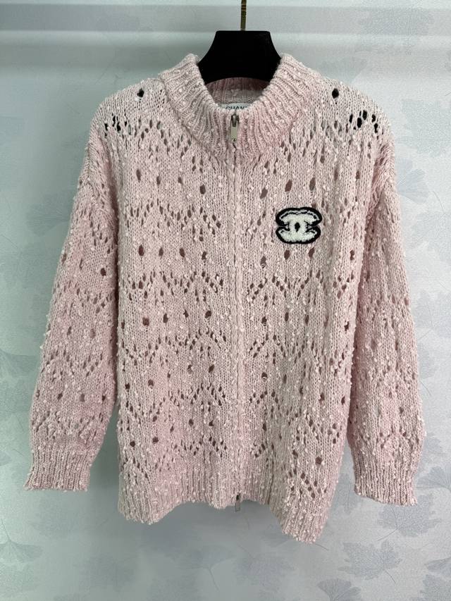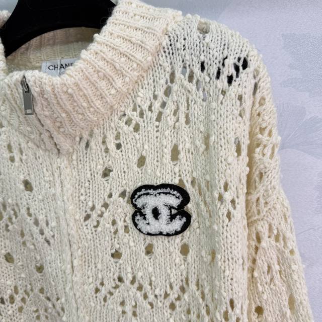 Ch*25 Early Fall new hollow knit cardigan featuring a classic Cc embroidered logo. Made of blended fabric, this soft and comfortable zippered cardigan features a stand-up collar and hollow pattern. The loose fit is versatile and stylish for everyday wear! Available in 2 colors and 3 sizes (Sml T226B