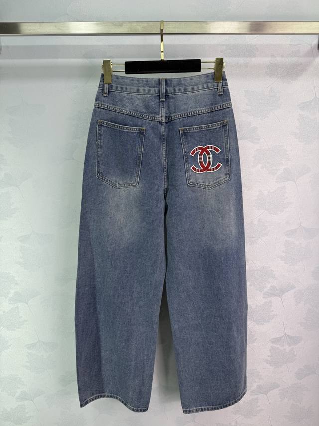 Ch*25 Early Fall new jeans, blue washed and distressed, with embroidered logo on