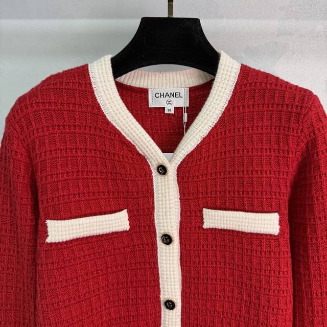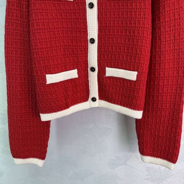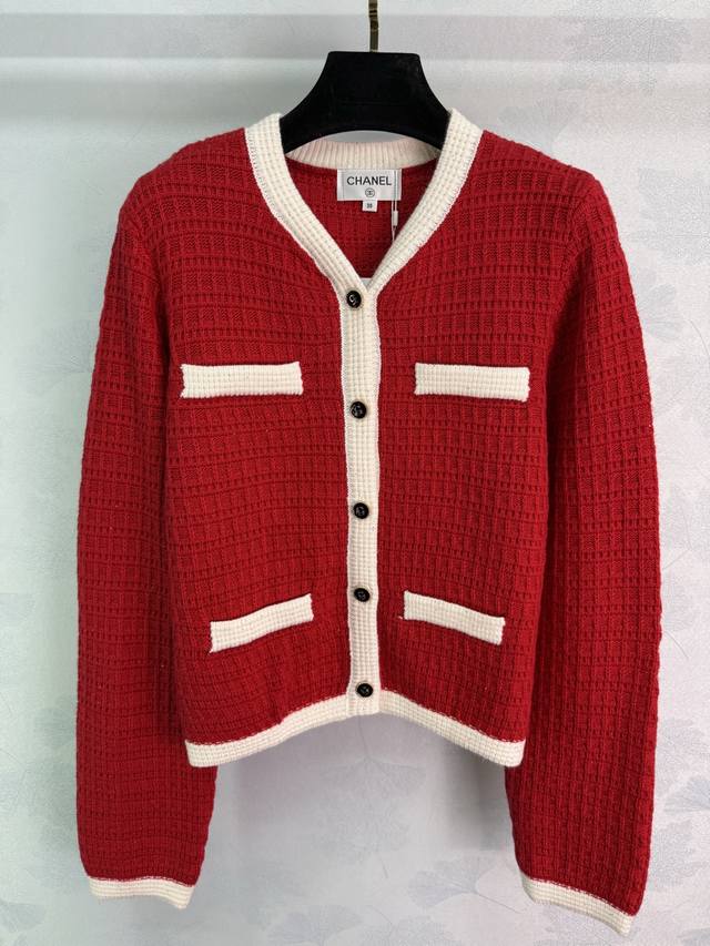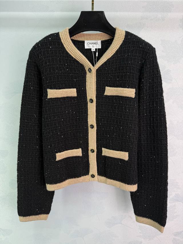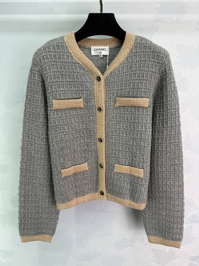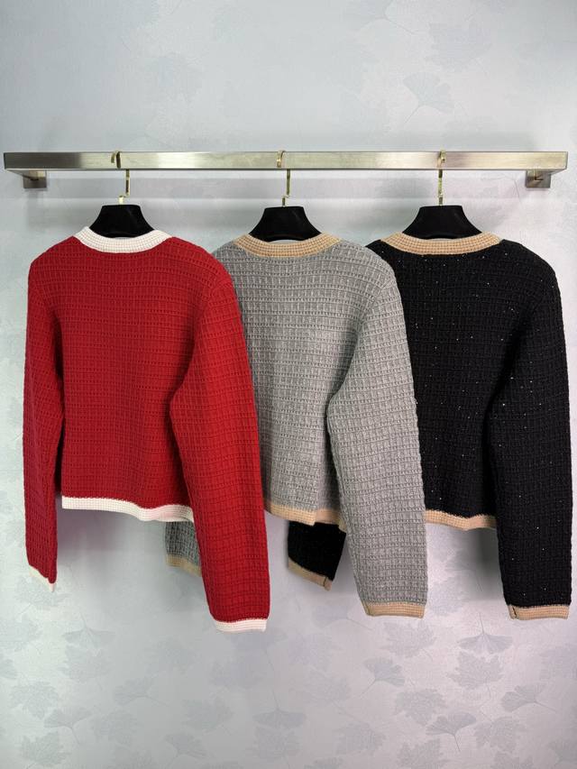 Ch*25 Early Fall new round-neck knitted cardigan, classic two-tone stitching design, comfortable and textured fabric, high-end, fashionable, light luxury, and celebrity style! 3 colors, 3 sizes Sml. T226B.