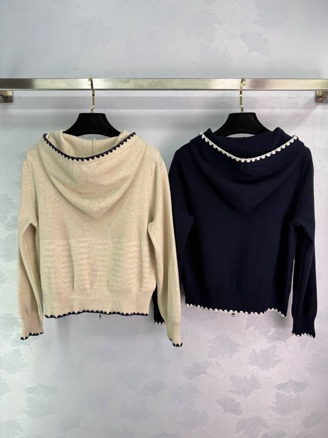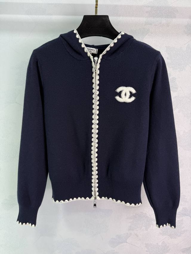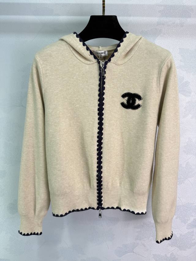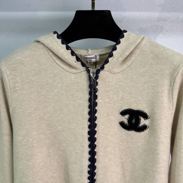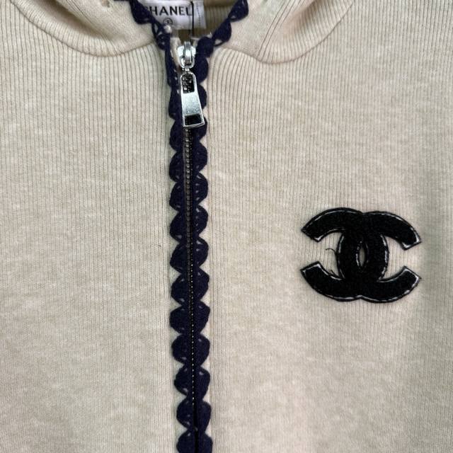 Ch*25 New autumn and winter hooded knitted cardigan. Classic contrasting color zipper design with lace trim. Super elegant. 3D double C logo on the chest to highlight the taste. Simple and versatile style for everyday autumn and winter! 2 colors and 3 sizes Sml