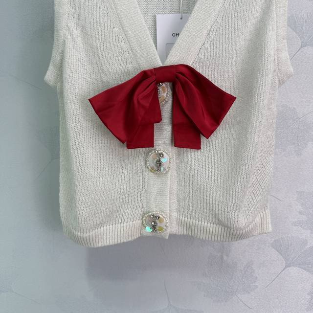Ch*25 New early fall knitted vest with a red bow and rhinestone buttons on the chest. The fabric is comfortable and looks great with skirts or pants. It's very stylish! 1 color, 3 sizes Sml T226B