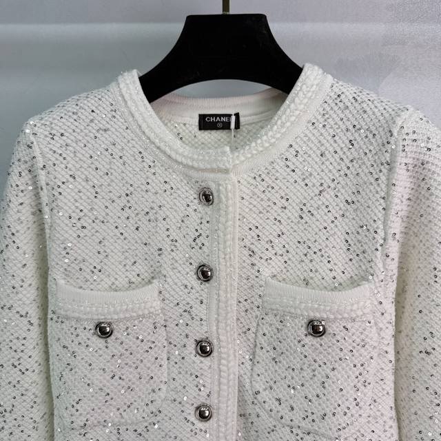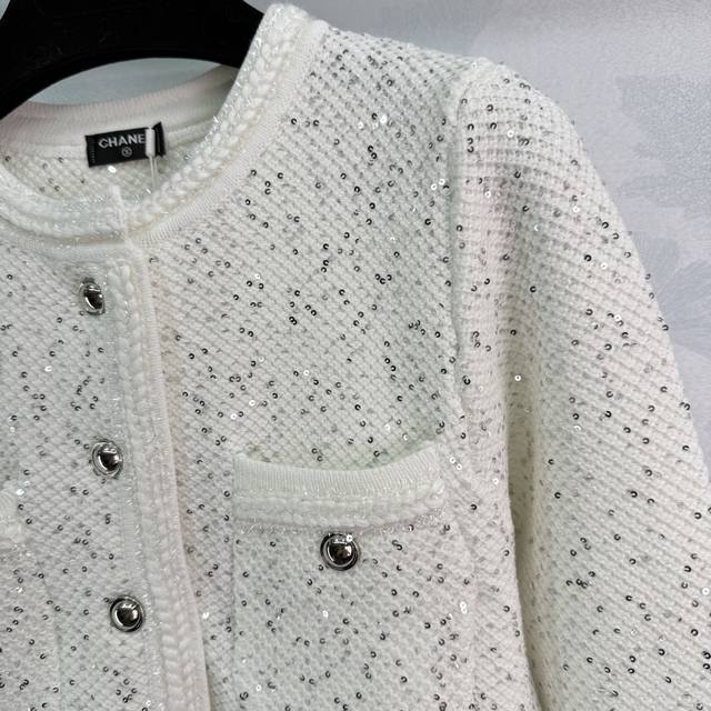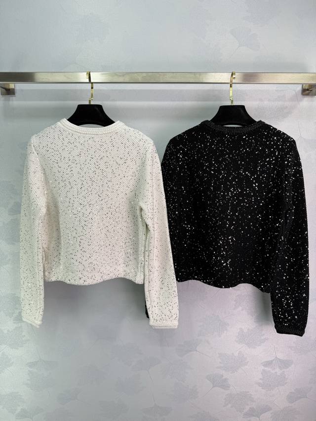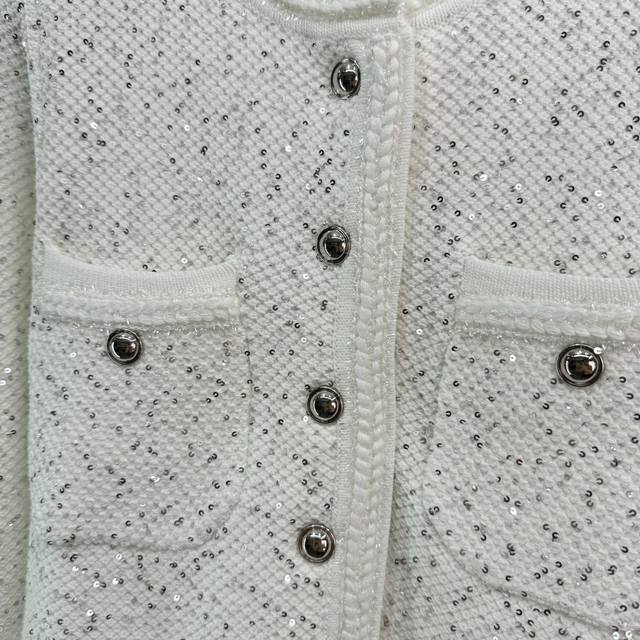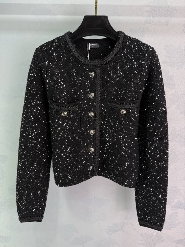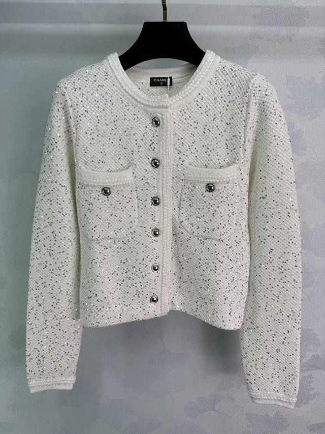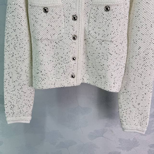 Ch*25 New fall/winter sequined round-neck jacket with an exquisite double-pocket design and silver button embellishments. The surface is covered with diamond sequins. The exquisite workmanship shows off the retro style and adds an elegant touch. The details echo the exquisite and fashionable feeling, making it perfect for dating or commuting! 2 colors and 3 sizes Sml T226B.