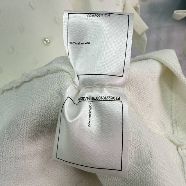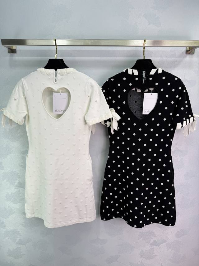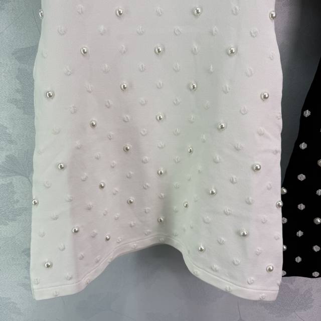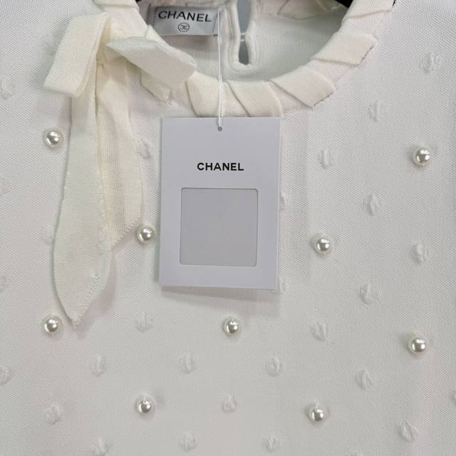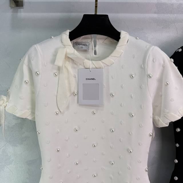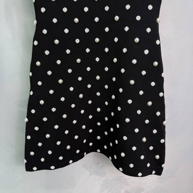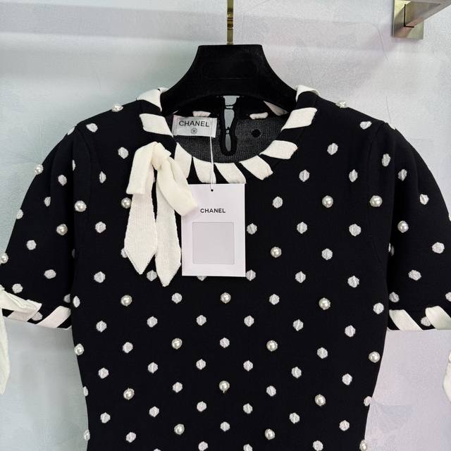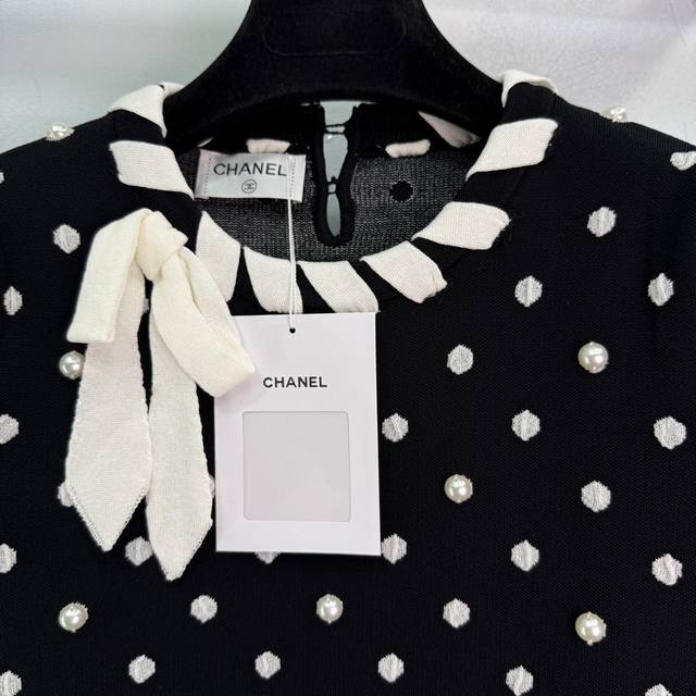 Ch*25 New pearl polka dot dress with a bow design on the chest, full of pearls,