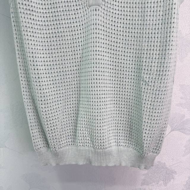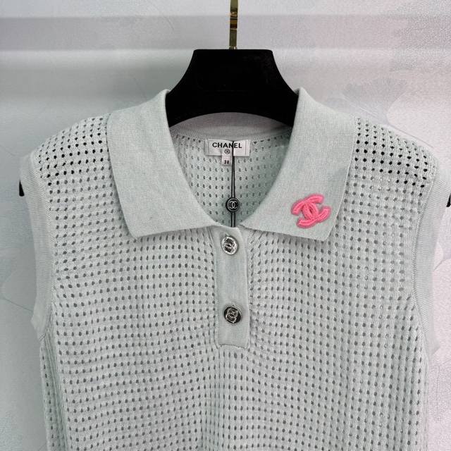 Ch*25 Spring and summer new knitted vest Polo collar design Front button half-open placket Hollow woven texture Visual light and sexy Highlights the figure Style is playful and age-reducing The layered effect is richer Easy to control for daily travel or parties! 2 colors 3 sizes Sml T226B.