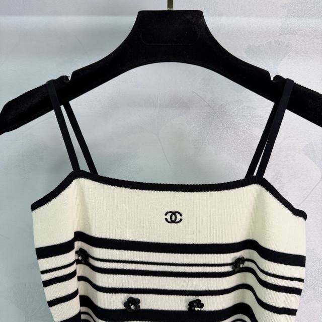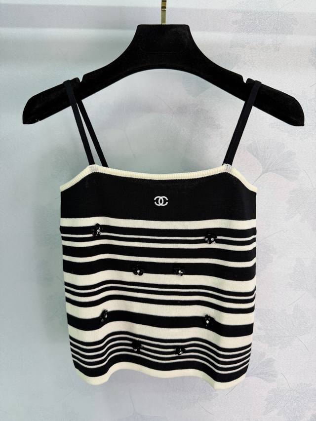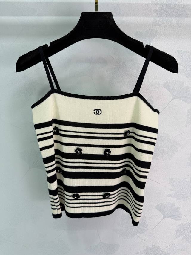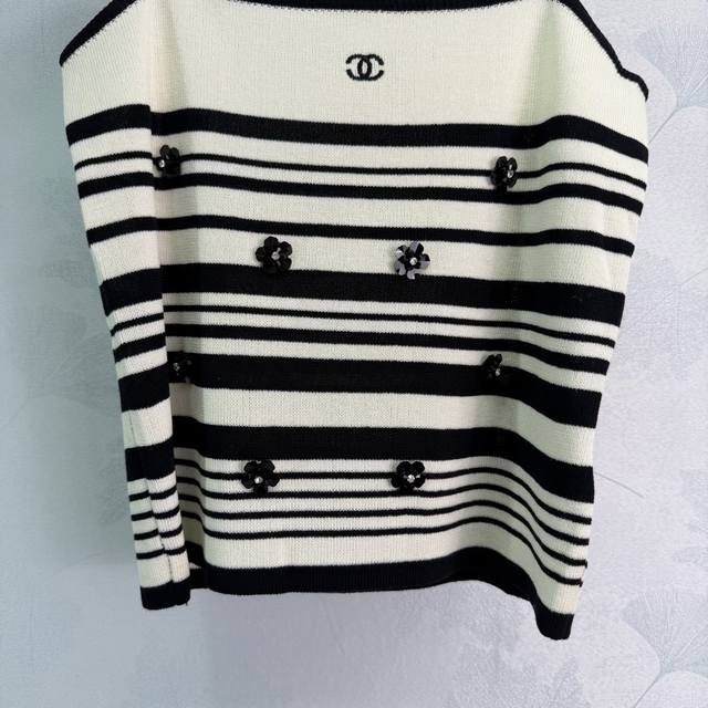 Ch*26 Early Spring New Embroidered Striped Knit Vest, black and white color blocking design, classic, elegant and textured, soft knit fabric, slim fit, easily shows off your figure. Three-dimensional flower on the chest, full of exquisite detail. 2 colors, 3 sizes: S, M, L, T226B, DDD