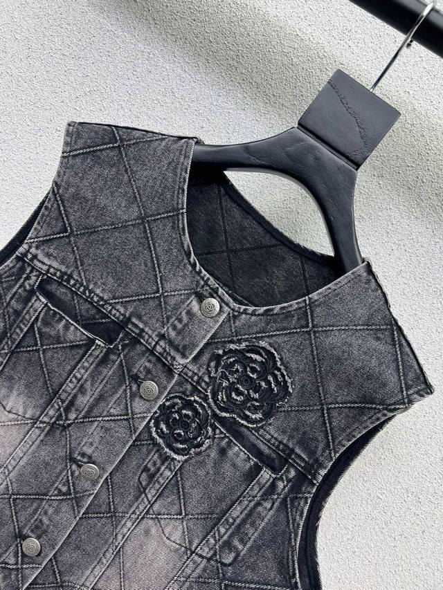 Chanel style denim vest jacket, high value, versatile, no worries, it feels very clean, a must-have for everyone, really great! Very comfortable washed denim cotton, old fermentation washed style, high quality size Sml