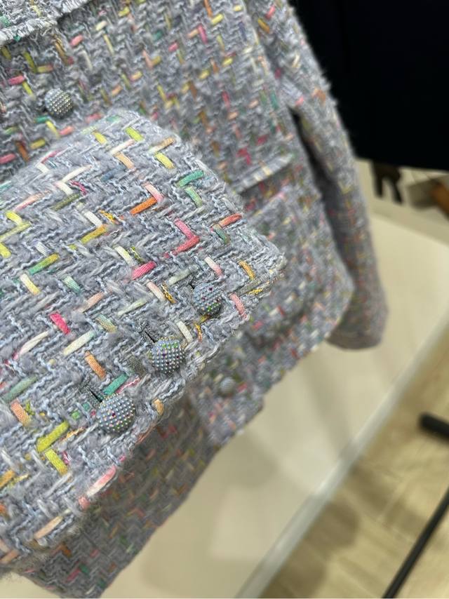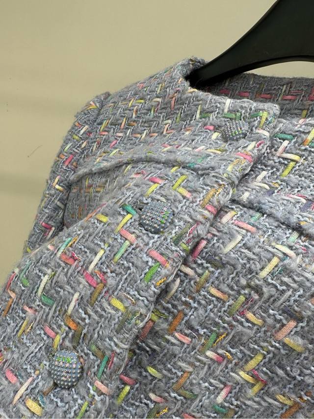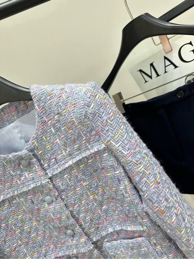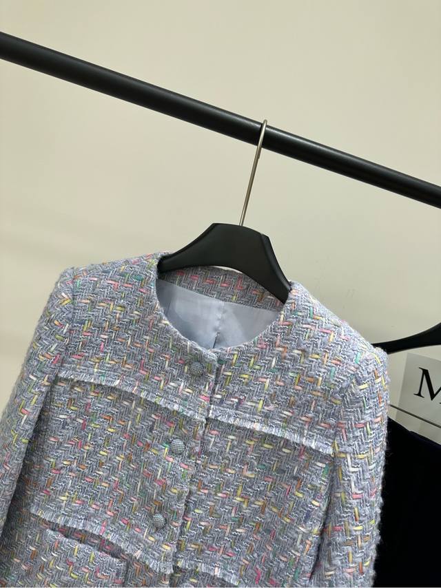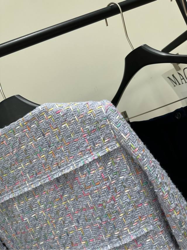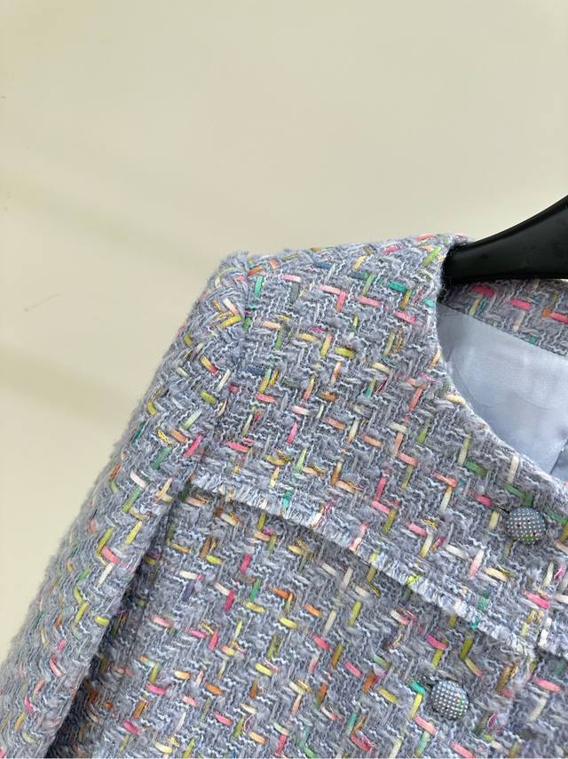 Chanel Taro Purple Double Pocket Tweed Jacket DDD, Fabric: Wool Tweed DDD Color: Taro Purple DDD Chanel 25B Autumn/Winter Series Taro Purple Tweed Jacket DDD Classic Chanel-style design DDD Retro buttons with a super textured feel DDD Colorful yarn interwoven, rich texture DDD Short cut, neat and flattering, enhances body proportions DDD Especially suitable for petite sisters, can be paired with jeans for a casual look DDD Also elegant and sophisticated with a skirt or shorts, easily switching between multiple styles DDD Tweed material is warm and fashionable, a must-have for autumn and winter wear DDD Flat lay size: DDD S: Shoulder width 37, Bust 92, Length 50, Sleeve length 58 DDD M: Shoulder width 38, Bust 96, Length 51, Sleeve length 59 DDD L: Shoulder width 39, Bust 100, Length 52, Sleeve length 60 DDD Manual measurement may have an error of 2-3cm, which is within the normal range DDD