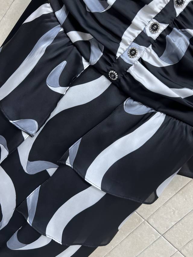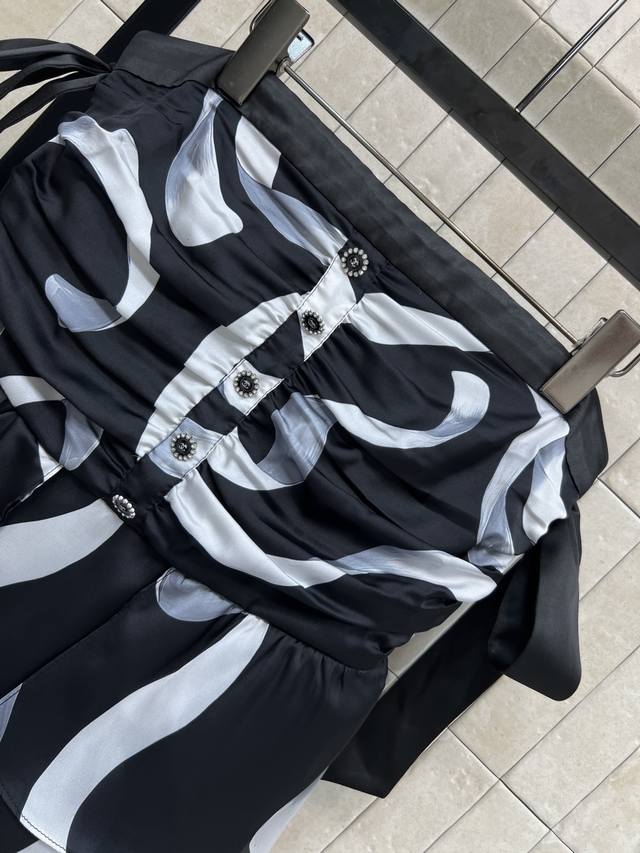 Chanel's 2025 Autumn/Winter New Ink-Painted Strapless Dress. The strapless design accentuates the neckline, exuding elegance and artistry. The lightweight and soft fabric is very comfortable for spring and summer wear. The pleats at the chest and the logo button embellishments add a touch of detail. It's perfect for everyday outings or vacations and can be easily paired with sandals or ankle boots. Available in three sizes.