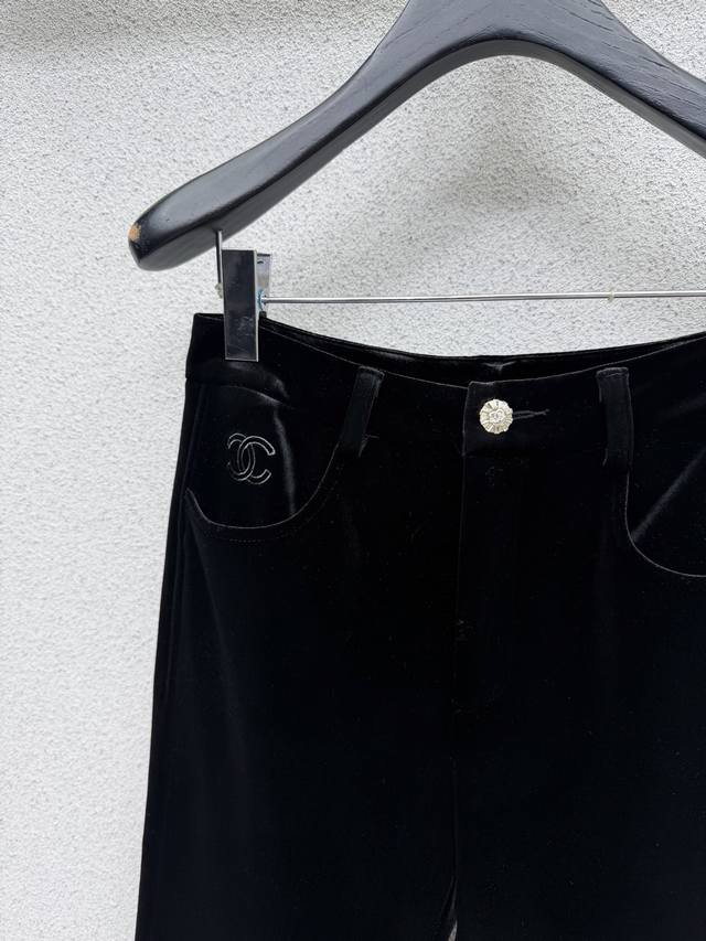 Chanel-style velvet flared trousers, versatile, flattering, simple, sophisticated, timeless, practical, custom-made fabric, comfortable and skin-friendly, fashionable, casual, high-quality, sizes S, M, L, D.