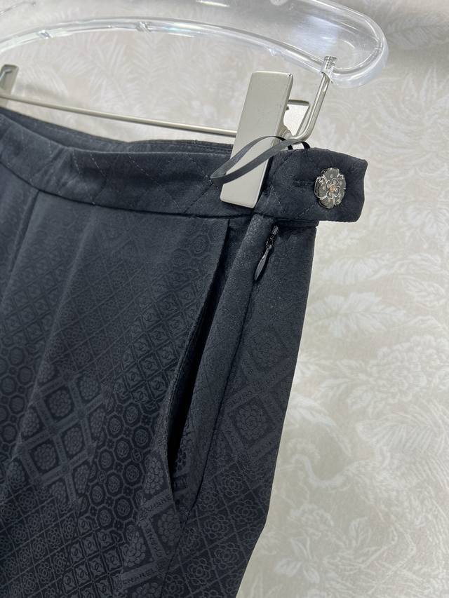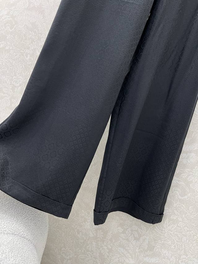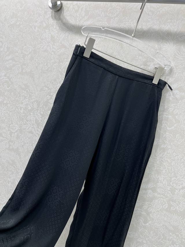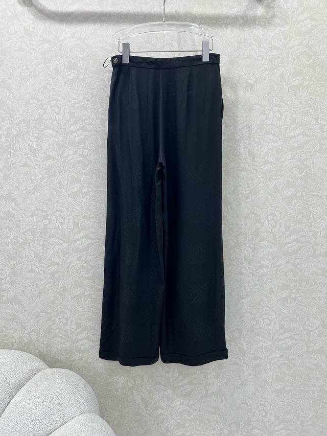Chan*L 25 autumn new high-edition silk jacquard dark diamond wide-leg trousers. Custom Yb imported double crepe silk material texture is different from ordinary 0.3 momme silk, with a smoother and luster, comfortable to wear and easier to care for. The curled edge design is simple and fashionable. The craftsmanship presents a delicate and full glossy jacquard dark pattern effect. The diamond-shaped camellia pattern and the letter logo hardware on the side echo the classic design of the Xiang family, and easily show the intellectual and elegant style. Customized fabrics and accessories, look for the version of silk high version solid color 3 sizes Sml