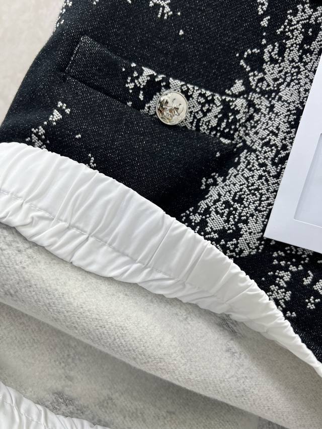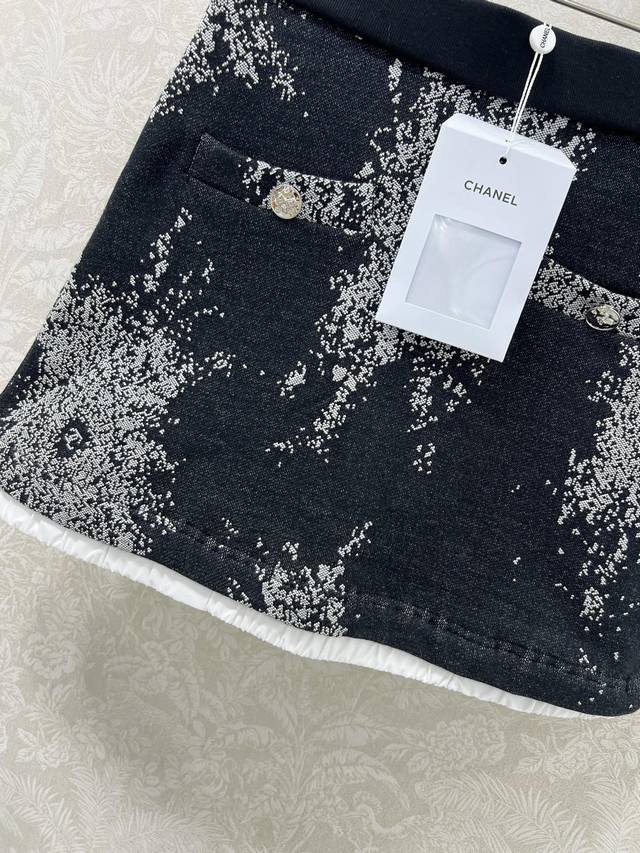 Chan*L 25 new fireworks jacquard short skirt! Custom jacquard pure cotton plus velvet sweatshirt fabric, Yb developed and customized, very heavy work! With classic black as the base color, it incorporates unique splashes of ink to break the monotony. The front pocket is decorated with beautiful little fairies, white, rich and beautiful artifacts! The short cut is suitable for a variety of wearing scenes. The hem splicing details are rich and layered, reducing the age and temperament of the girl. The high-end color is luxurious and advanced. The version is versatile and fashionable and advanced! The details are fully in place and the workmanship is perfect. Single color 3 size Smlb