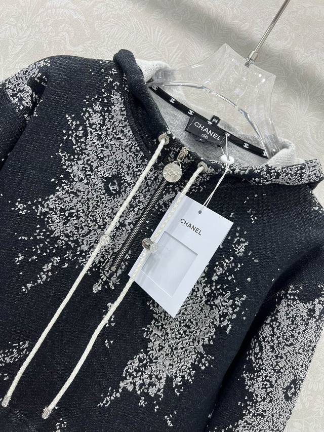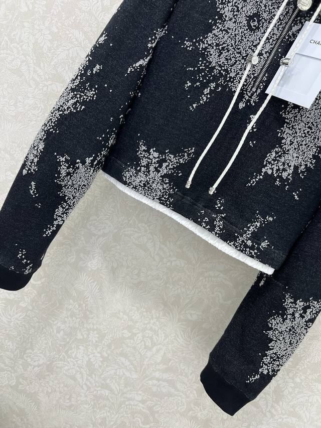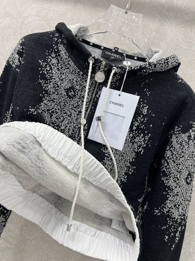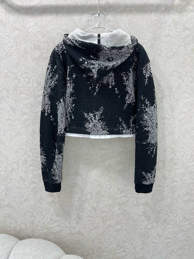Chan*L 25 new fireworks jacquard short sweatshirt! Custom jacquard pure cotton and velvet sweatshirt fabric, developed and customized by Yb, very heavy work! With classic black as the base color, it incorporates unique splash ink to break the monotony of the temperament. The short hooded pendant decoration and the letter webbing on the hood are super embellished with the beautiful fairy white rich beauty artifact! The short cut is suitable for a variety of wearing scenes, and the hem splicing details are rich and layered, reducing the age and temperament of the girl. The high-end color is luxurious and advanced. The version is versatile and fashionable and advanced! The details are in place and the workmanship is perfect. Single color 3 size Smlb.