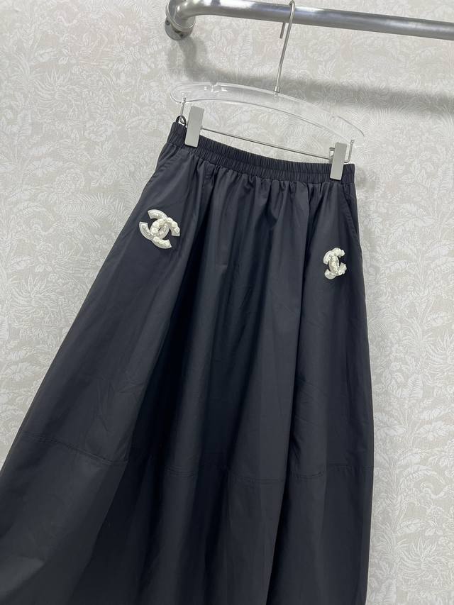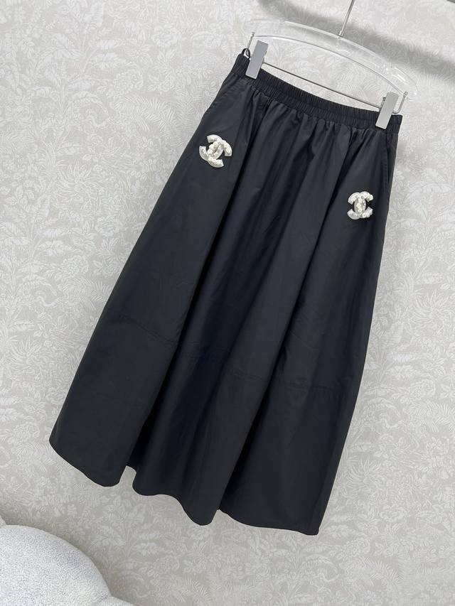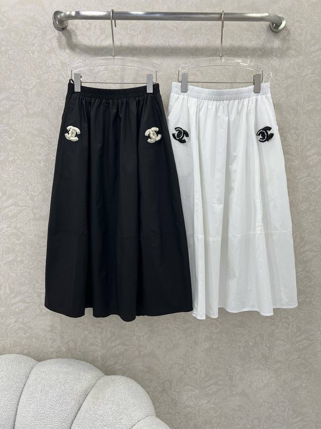 Chan*L 25 New vintage style double C pattern skirt is very beautiful and fashionable. The double C patch will not make you look dull, but will make you look younger and more energetic. The top and bottom are cut in a spliced way. The whole skirt is very heavy. The upper body is full of three-dimensional sense. The length is below the knee. The double C pattern is handmade by a little expert in hiding meat. 2 colors and 3 sizes Sml B