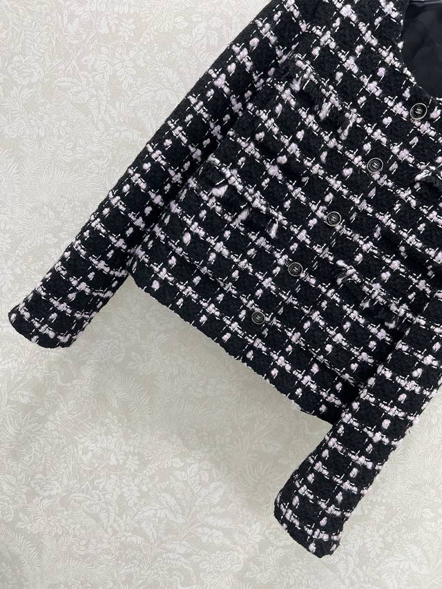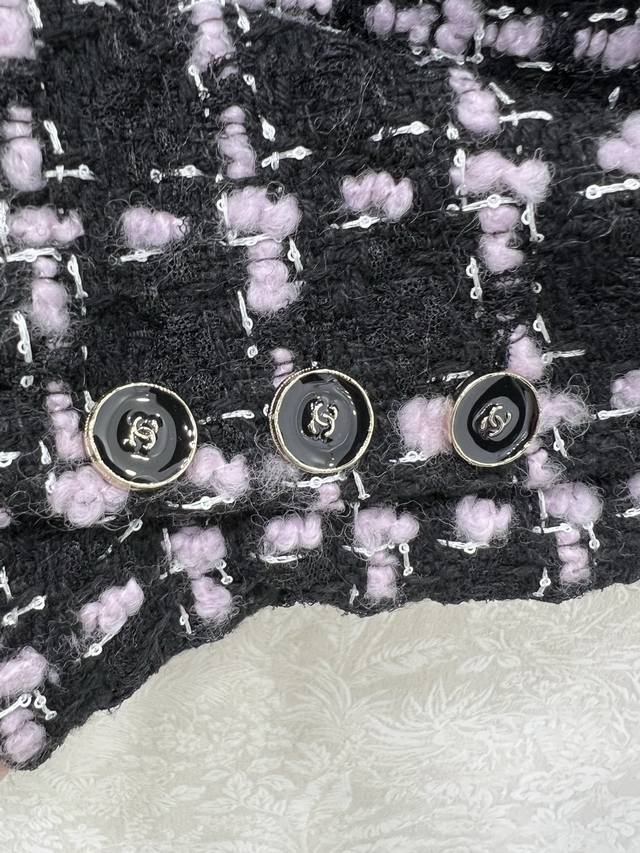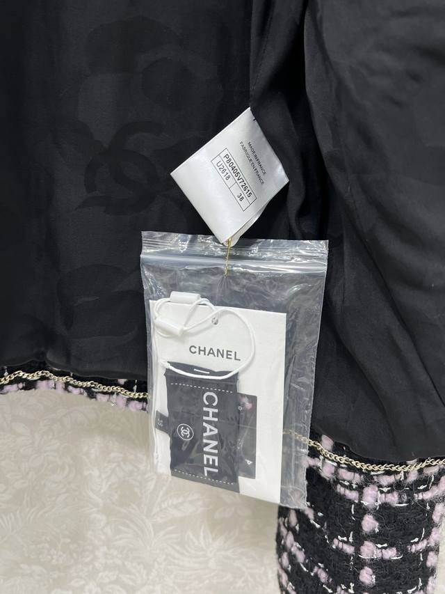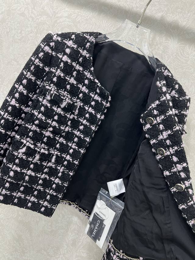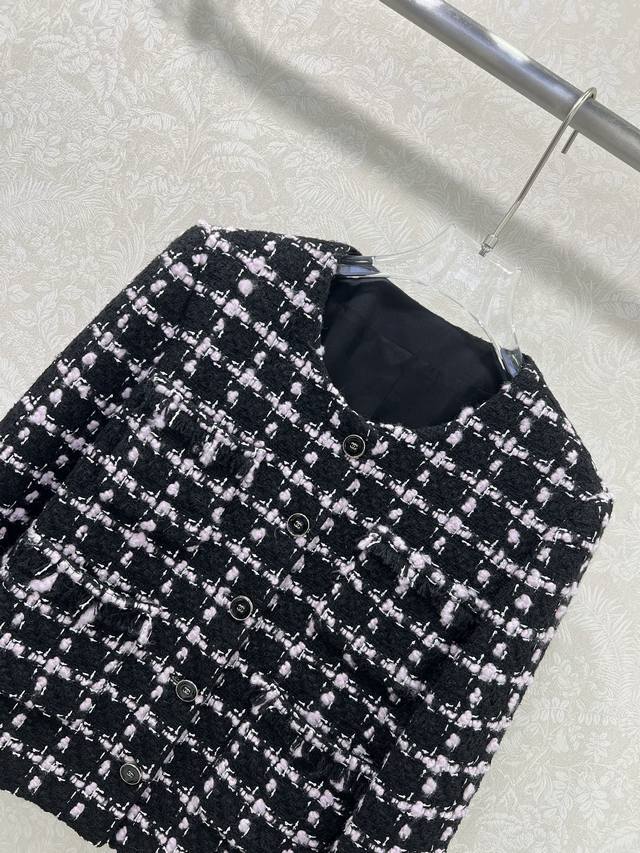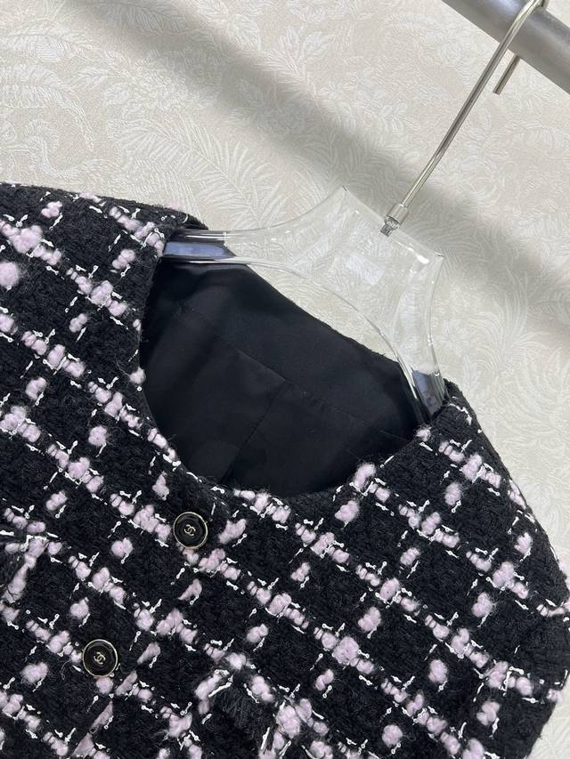 Chan*L 25 new woven dress, short jacket with tied hems. 100% silk lining. Pay attention to the details to distinguish the versions. Imported wool tweed with a distinct texture. The wool is visible to the naked eye, and the quality is superior. The coarse striped tweed fabric creates a model of ladylike style. The front is single-row with engraved round buttons. The exquisite pink and black woven texture is luxurious and elegant. The waist and pocket edges are decorated with quilted fringe, which is elegant and charming. The rich design has a layered and fashionable look. The first choice for custom fabrics and accessories. Look for the high version 36, 38, 40 B.