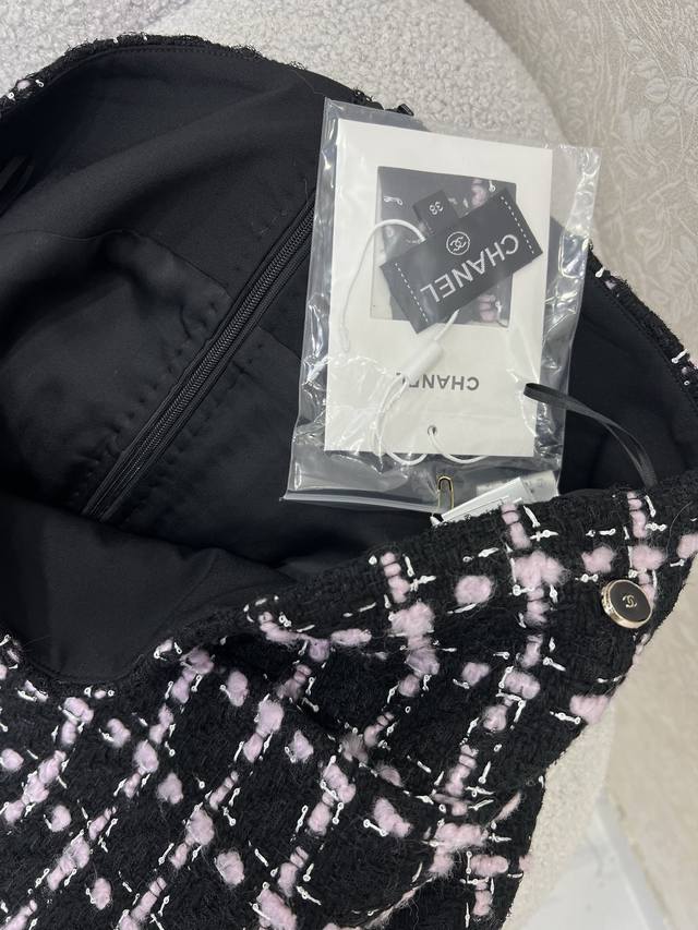 Chan*L 25 new woven dress with a 100% silk lining. Hand-trimmed edges. Pay attention to the details to distinguish the versions. Imported wool tweed with a distinct texture. The wool is visible to the naked eye. The high-quality coarse floral stripes create a model of ladylike style. A single button is decorated with exquisite pink and black woven texture. Luxurious and elegant. The pocket edges are decorated with lint and tassels. Elegant and charming. The rich design has a layered feel and is fashionable and sophisticated. Custom fabrics and accessories are the first choice. Look for the high-end version of the skirt. 36, 38, 40 B.