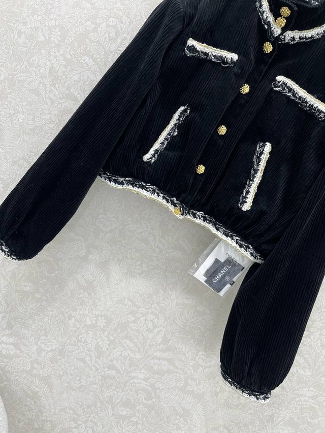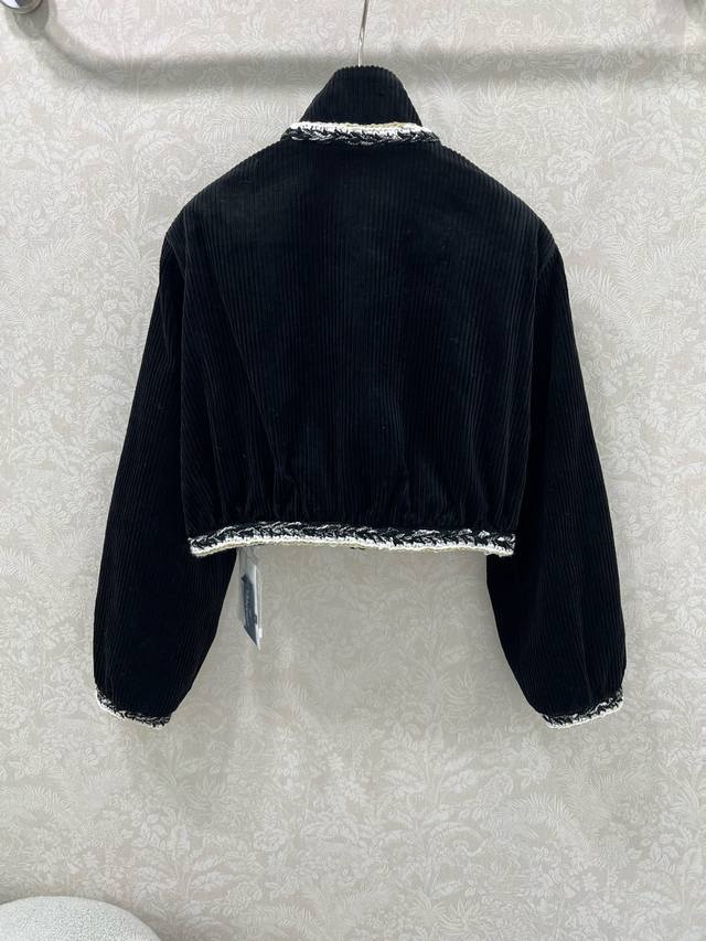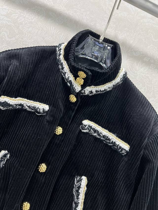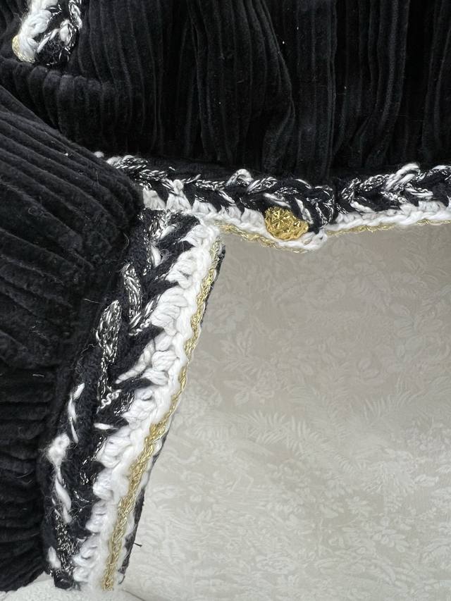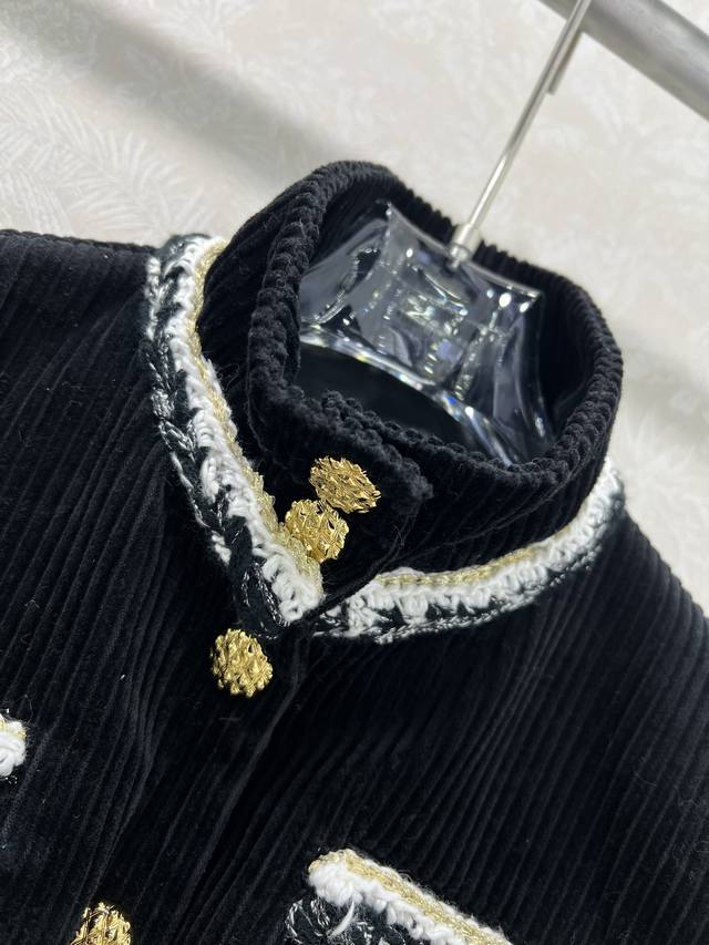 Chan*L25 New Corduroy Patchwork Color-Blocked Woven Lace High-Neck Short Jacket, Custom Yb Imported Material with Distinctive Texture and Superior Quality, Exquisite Color Scheme Creates a Chanel-Style Classic, Metal Buttons with Color-Blocking Embellishment, Showcasing Luxury Without Losing Elegance. The ready-to-wear woven elements and handcrafted details highlight the understated elegance and sophisticated taste of a high-class lady. A top choice for fashionable women all year round. Custom fabric and accessories, single color, sizes 36, 38, 40B.