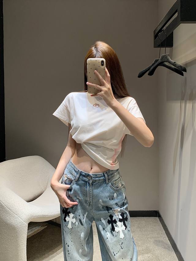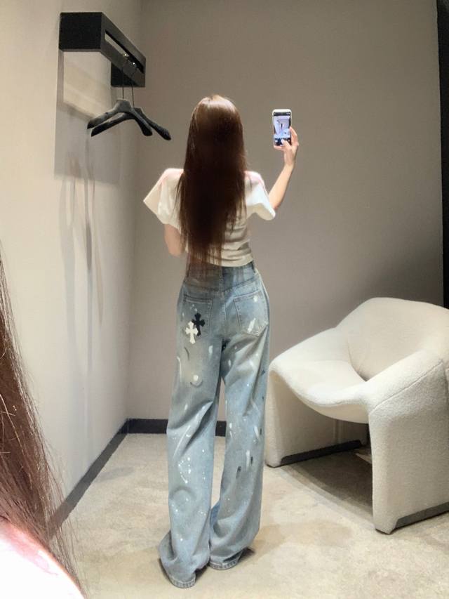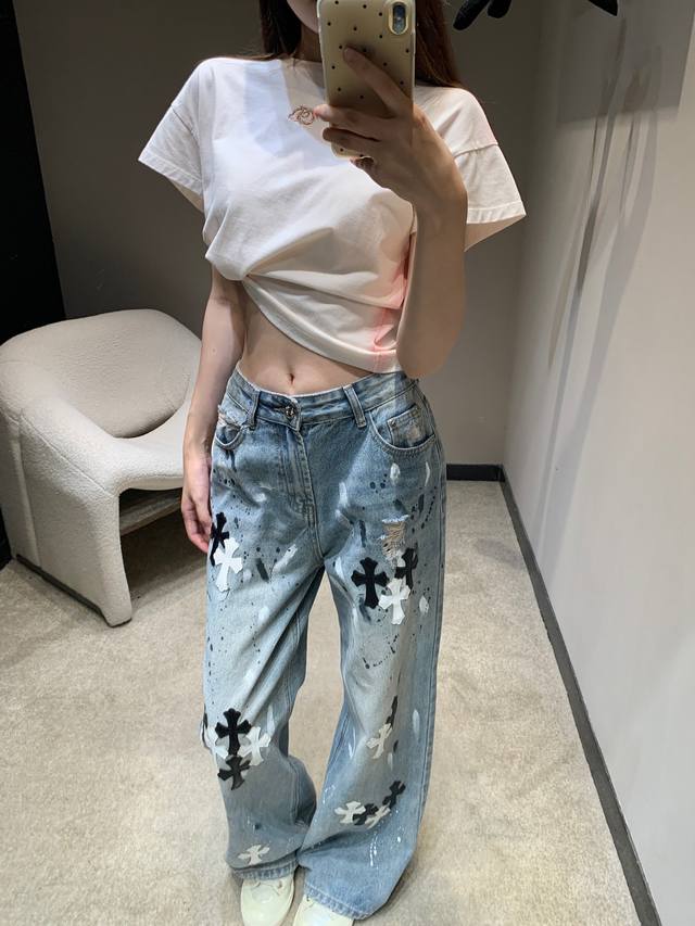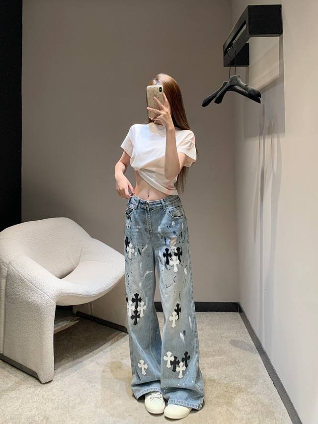 Chorme Heart* 25Fw Early Fall New Style Heavy Ink-Splashed Cross Leather Label Denim Pants | Exclusive High-End Product! Made of pure cotton, the leather cross is crafted with premium texture, custom hardware, and fermentation-washed for a beautiful color palette. The overall top is trendy and fashionable, with a versatile fit that suits all body types. The impeccable workmanship and quality are evident in the details. Available now in S, M, L, and