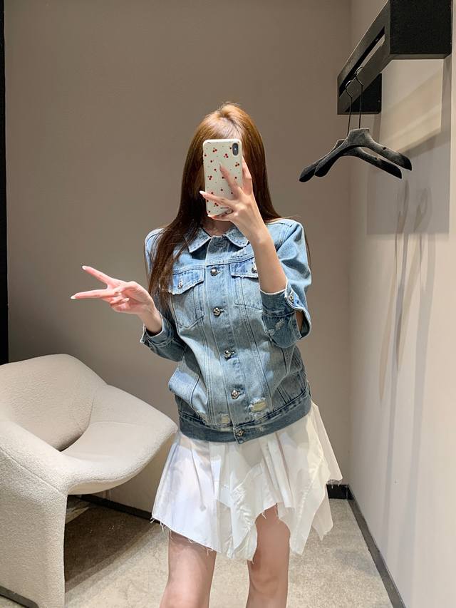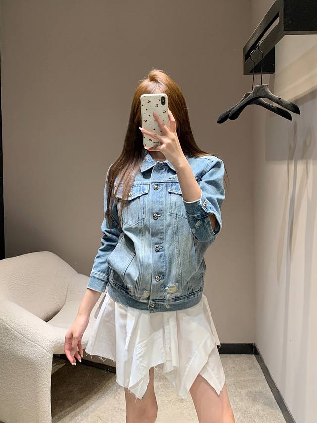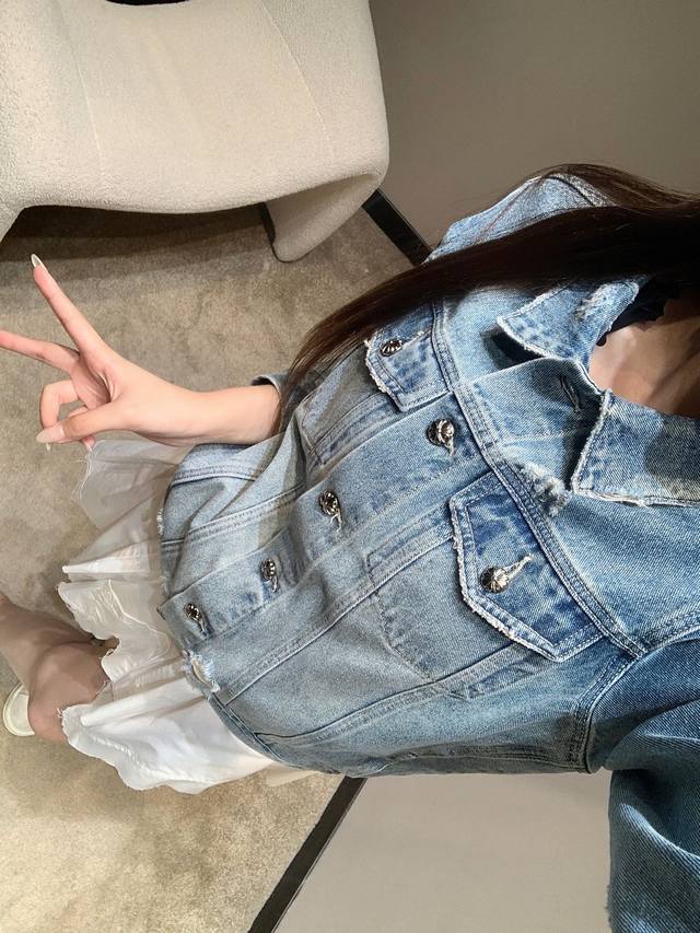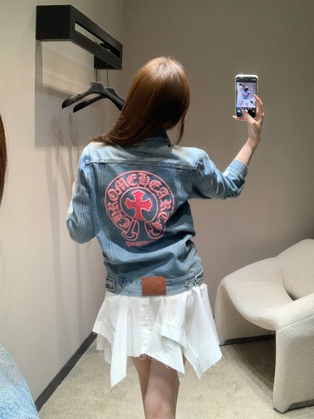 Chorme Heart* 26Ss Early Spring New Arrival Cross 3D Logo Denim Jacket | Exclusive High-Quality Production! The distressed light blue denim has a retro filter, the crisp denim fabric holds its shape well, and the slim-fit, slightly oversized silhouette suits all body types. Distressed details and 3D metal cross buttons embody the signature cool and edgy aesthetic; the giant cross print on the back and leather nameplate add an effortless touch of luxury. Available now in sizes S, M, L, D.D.