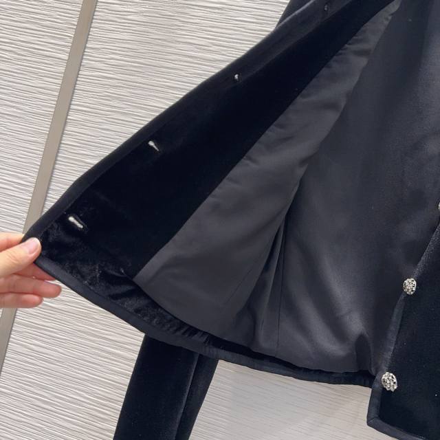 Christian Dio* 2025Fw New Coat, Custom Velvet Fabric, Retro and Stylish, Meeting Both Comfort and Fashion Needs, Suitable for Everyday Wear. Playful and Youthful Design Elements. Sizes: S, M, XL. S: Back Length 49.5cm, Shoulder Width 37.5cm, Bust 94.5cm, Sleeve Length 59.5cm, Cuff 26cm. Brooch available for an additional +15.