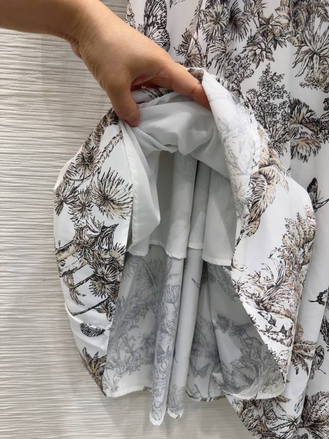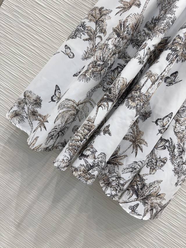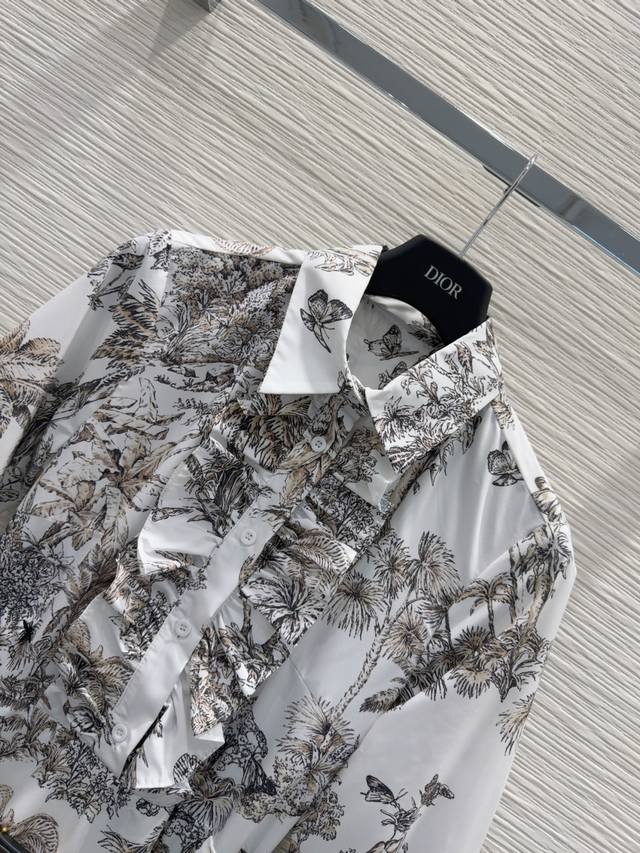 Christian Dio* 2025Fw new leaf-print ruffled shirt dress. Low-key luxury. Three-dimensional tailoring and streamlined design. Noble and elegant, yet exuding a gentle and intellectual temperament. Imported special materials. You'll be amazed when you receive it. Custom-made fabric with superb texture! Sml S mid-back length 115cm, shoulder width 38cm, chest 91cm