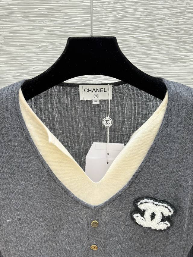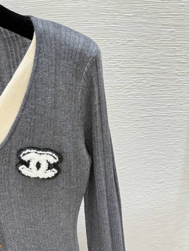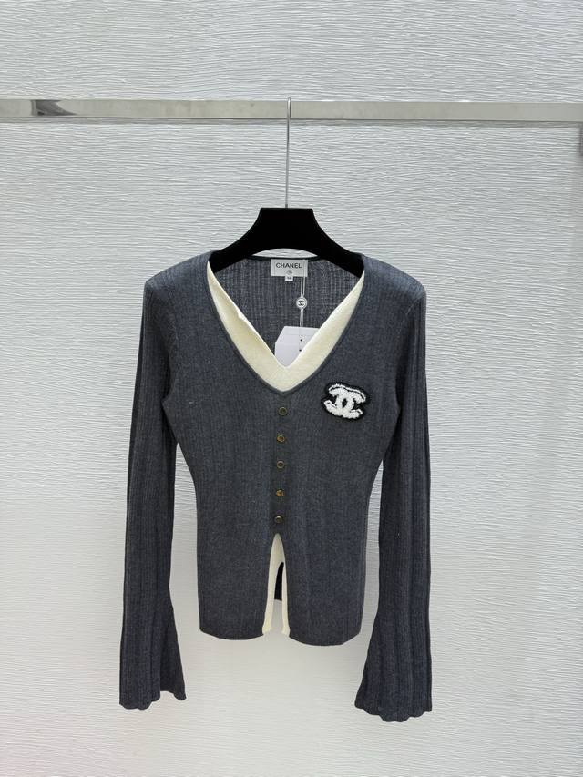 / Ch's early autumn new colorblock V-neck knitted long sleeve Color: Gray Coffee S
