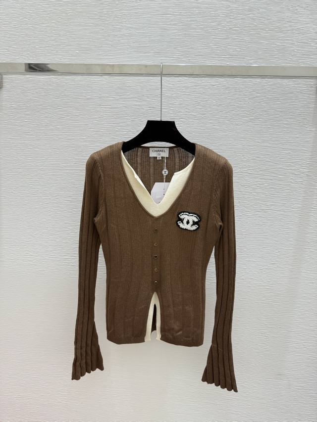 Ch's early autumn new colorblock V-neck knitted long sleeve Color: Gray Coffee S