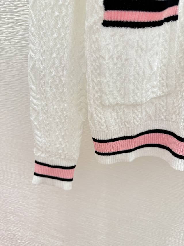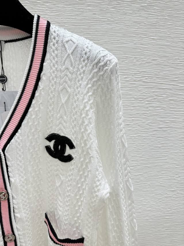 Ch's early autumn new contrast color V-neck knitted long-sleeved cardigan Color: