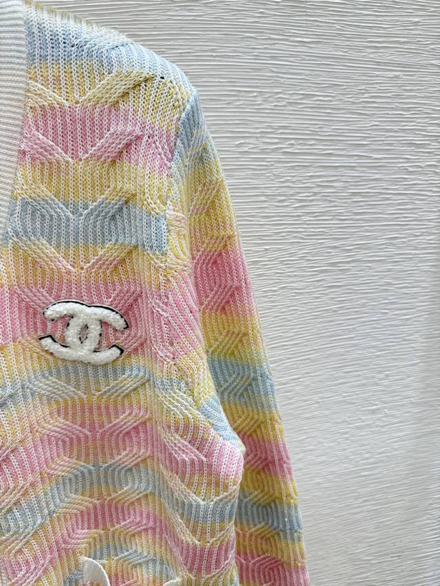 Ch's early autumn new contrast striped V-neck knitted long-sleeved cardigan Colo