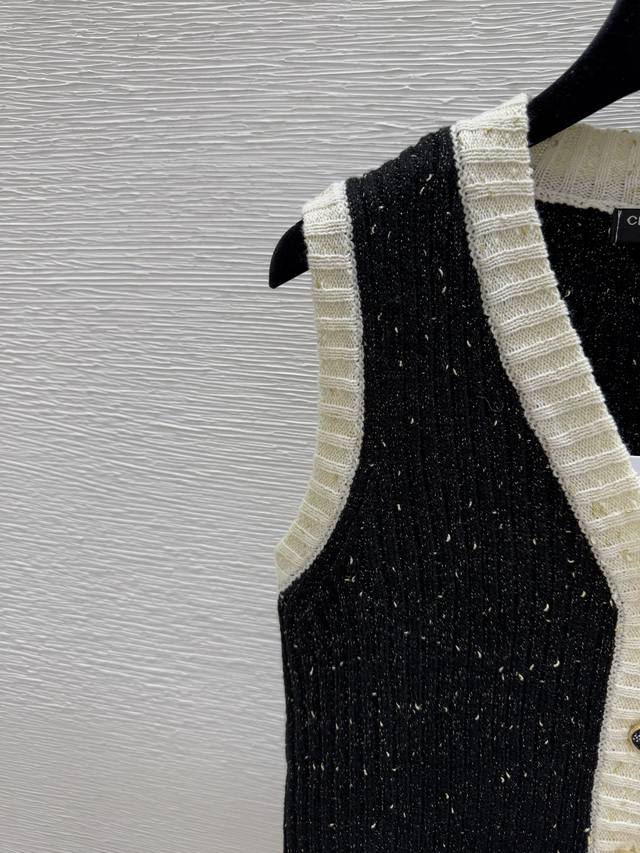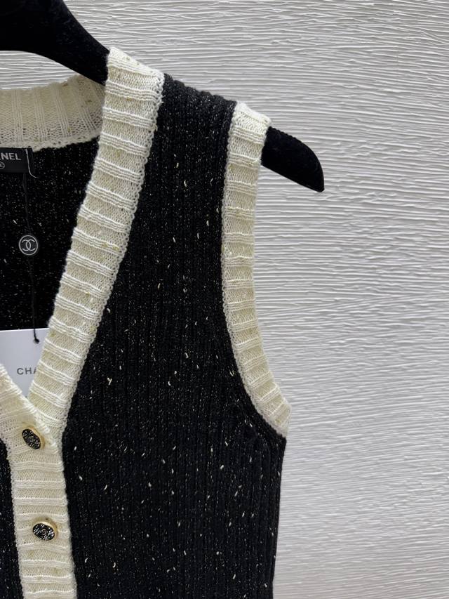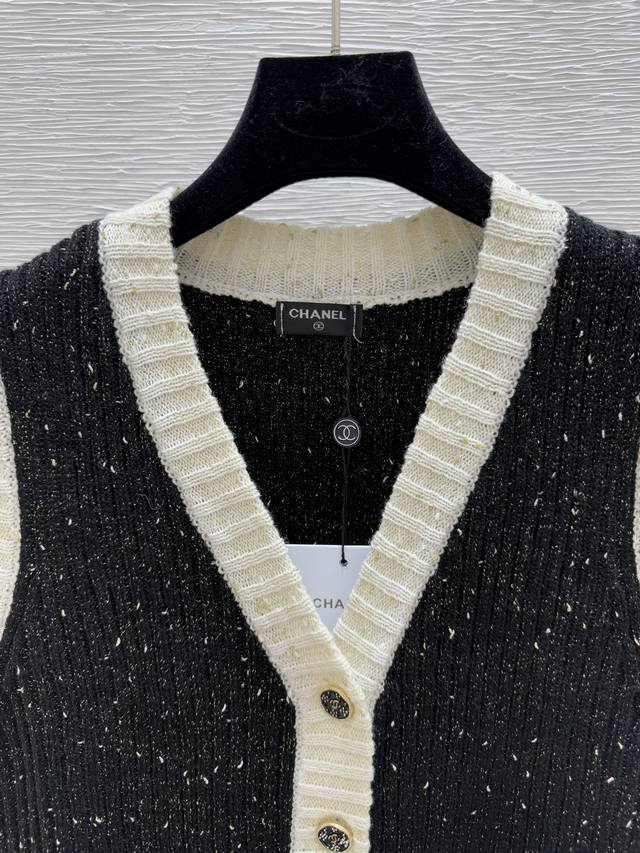 Ch's new summer colorblock gold and silver thread V-neck knitted vest cardigan C