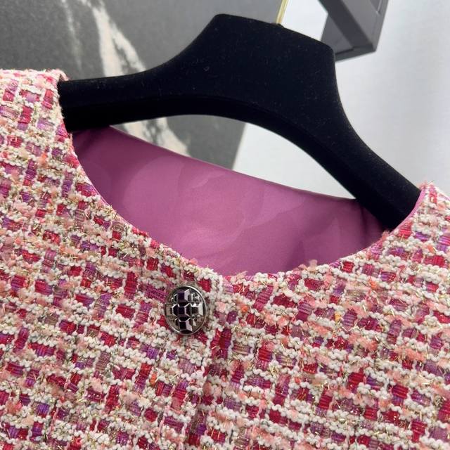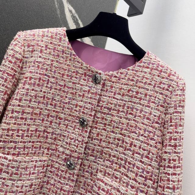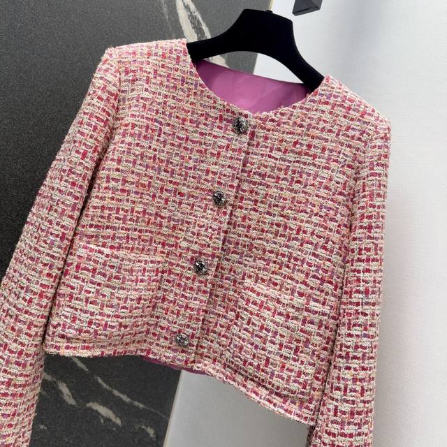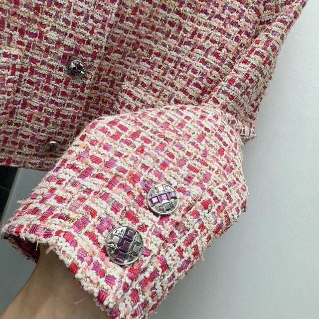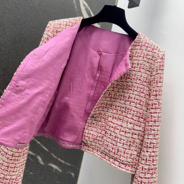 Cjia 25Ss autumn and winter new arrival, Chanel style woven tweed jacket, beautiful high-grade colored yarn woven fabric, super beautiful three-dimensional texture, full of exquisite feeling, the upper body has a noble temperament, custom buckles, 3D three-dimensional tailoring, super slimming, practical, high-value and more beautiful, French celebrity style, elegant and high-end, a must-have for wealthy daughters, Sml S size: bust 94, length 48,