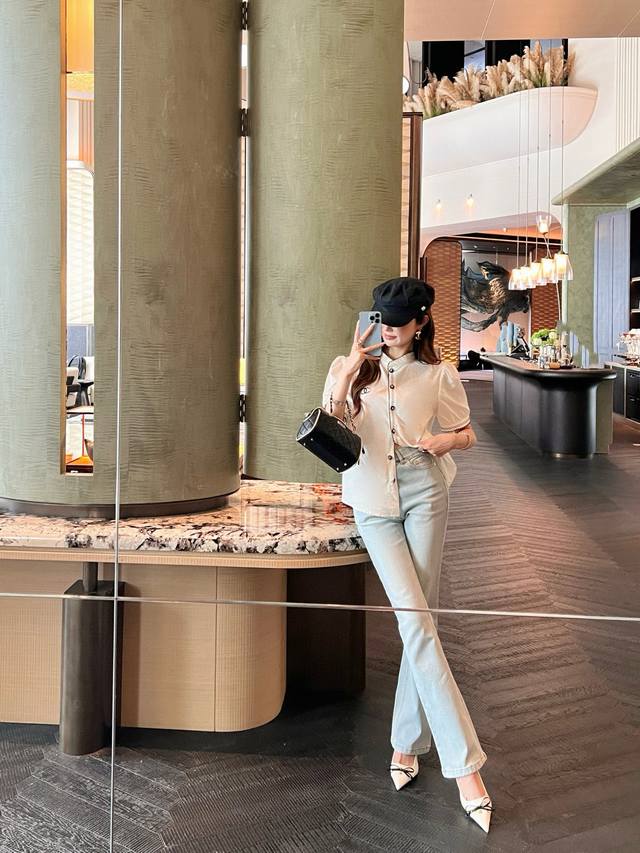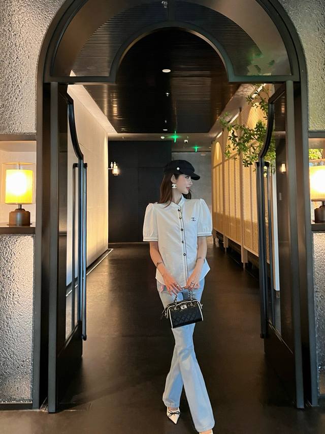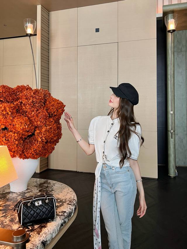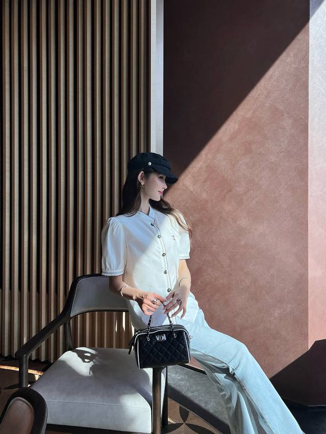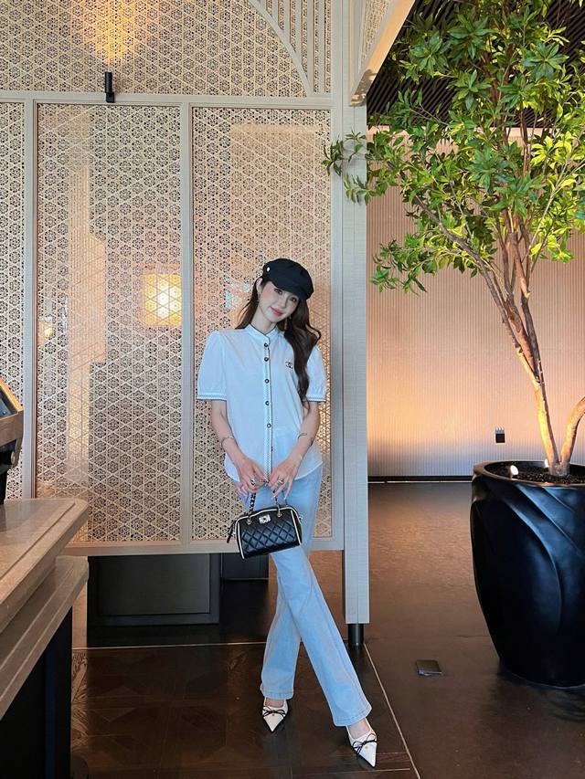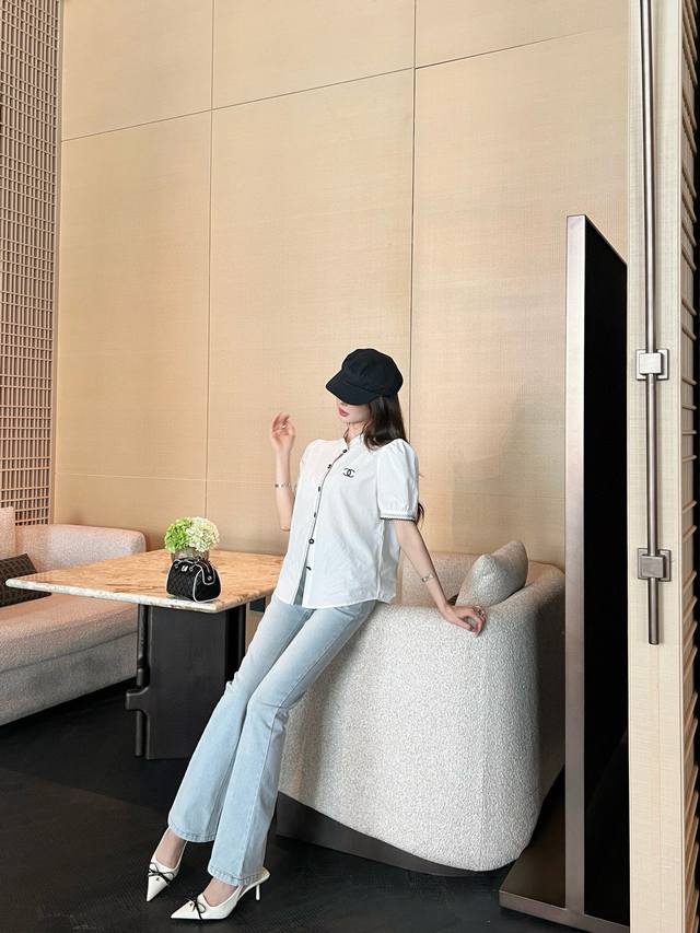 Cjia 25Ss latest spring and summer black contrasting embroidery small stand collar short-sleeved shirt customized poplin cotton fabric black thread embroidery contrasting color matching is particularly good-looking fresh and age-reducing fashionable classic H version design can be matched with the lower body to transform into a long-legged girl. All colors are available for sale Sml
