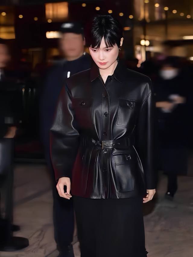 Classic and versatile mid-length leather jacket. Classic lapel leather jacket embodies the aura of an urban heroine. Soft, flexible, elegant and fashionable. Vtg style that is very popular in spring. Paired with a belt leather jacket Smlxl