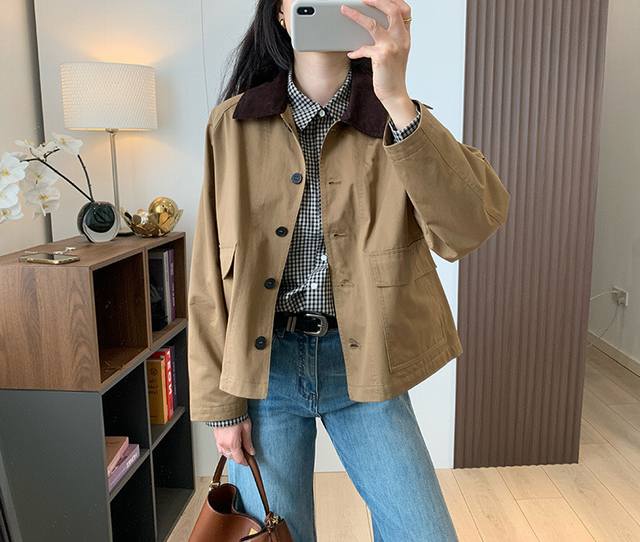 / Classic retro fine plaid ~ 25 autumn new simple versatile stackable lapel basic