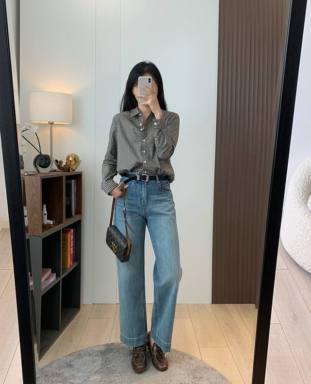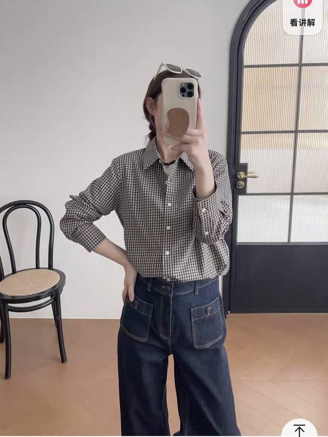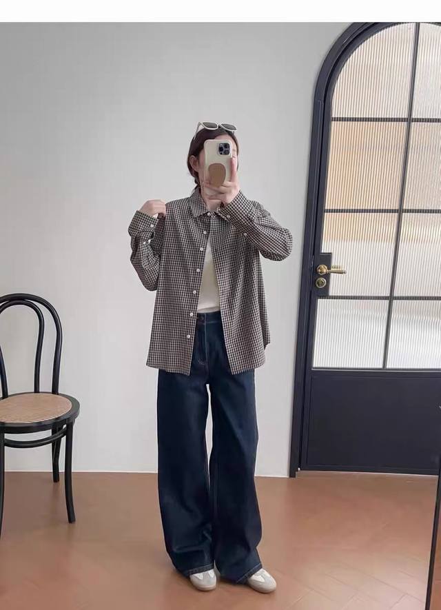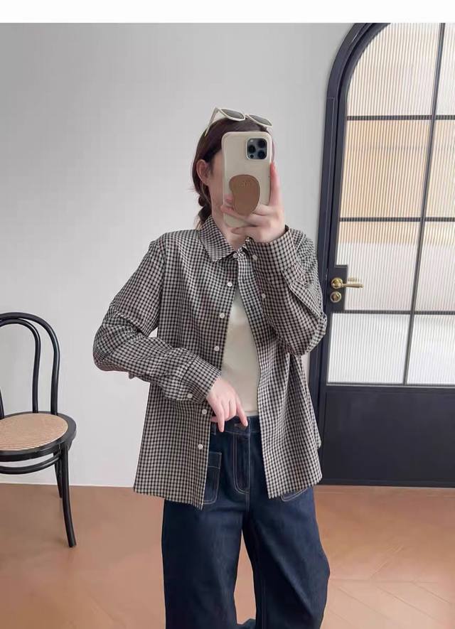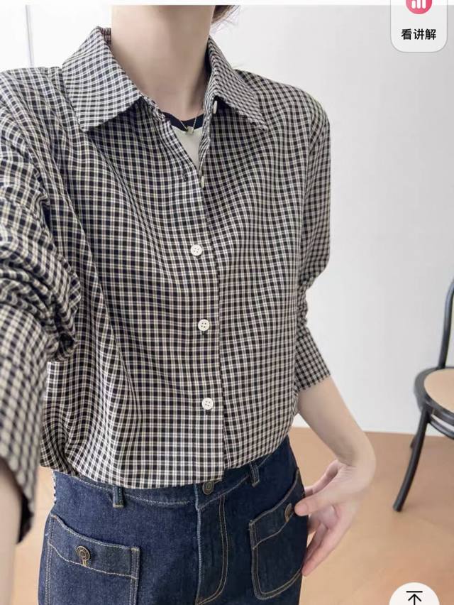 Classic retro fine plaid ~ 25 autumn new simple versatile stackable lapel basic long-sleeved shirt top
