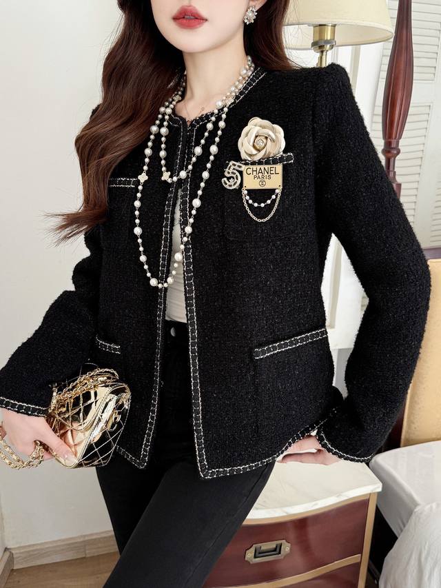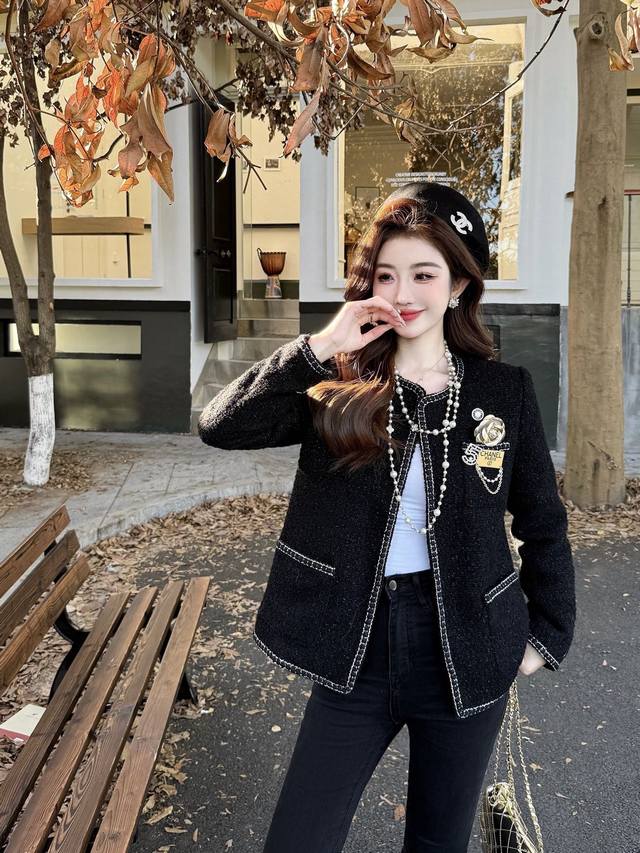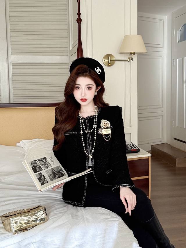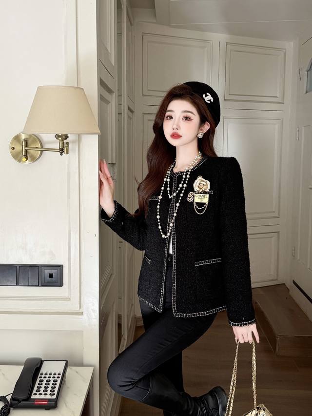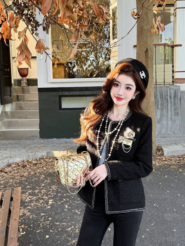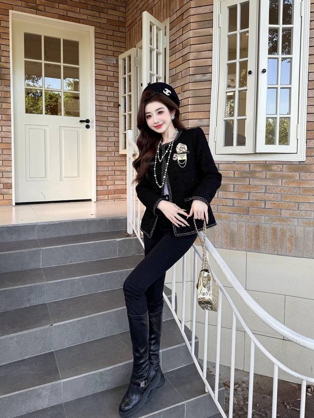 A luxurious and elegant tweed coat with a down lining. The effortless elegance is undeniable; it's a hidden gem with a Chanel-inspired style, exuding high-class sophistication. It's a very high-end and chic piece, perfect for a sophisticated socialite. The Chanel-inspired cut is universally flattering. Sizes: Smlxl
