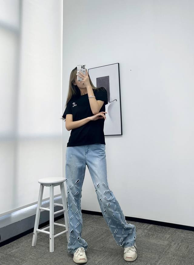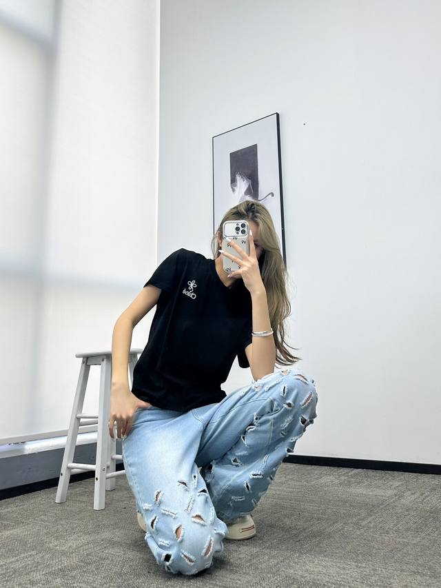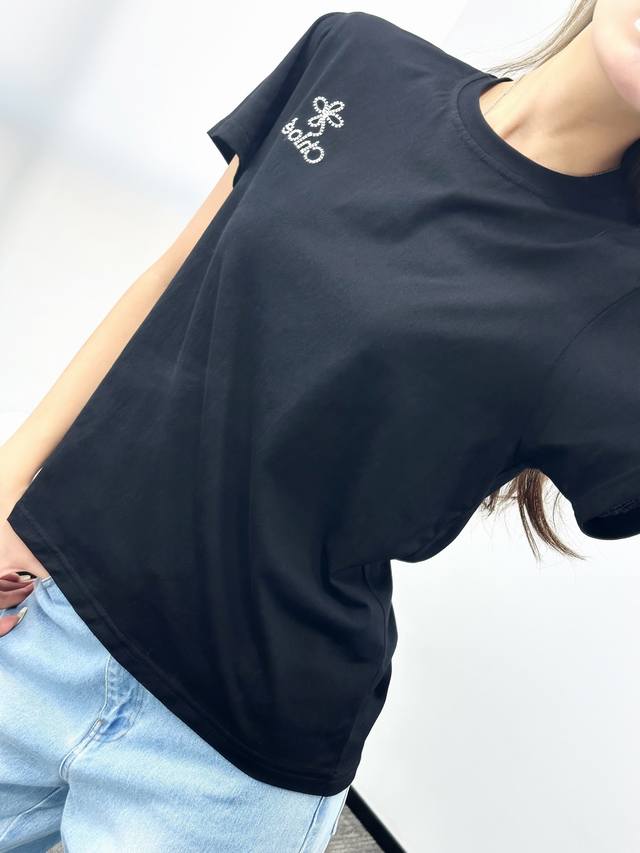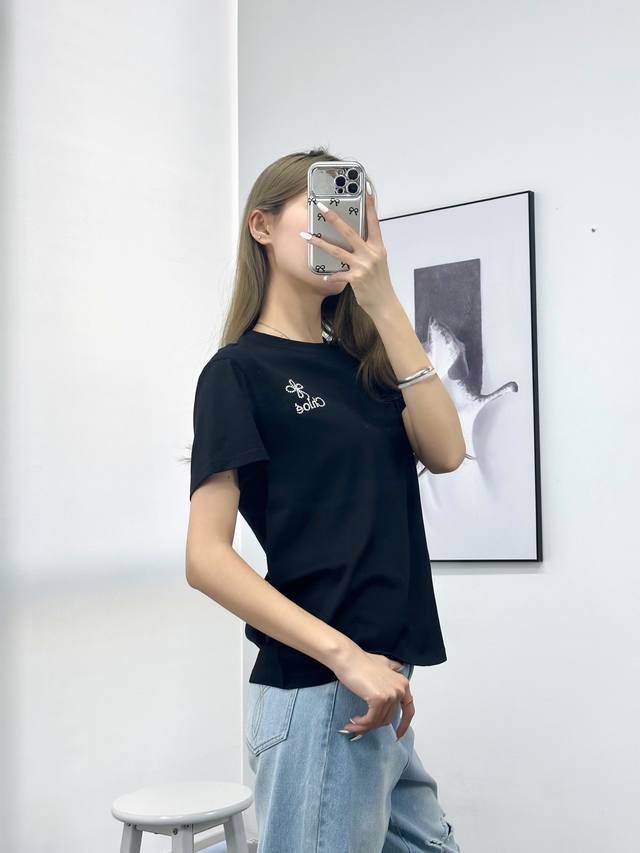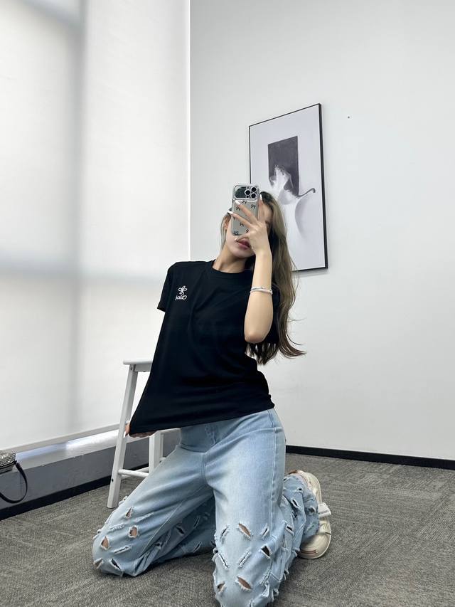 Color-blocked logo embroidered T-shirt! Cotton, two colors, S, M, L, Ddd