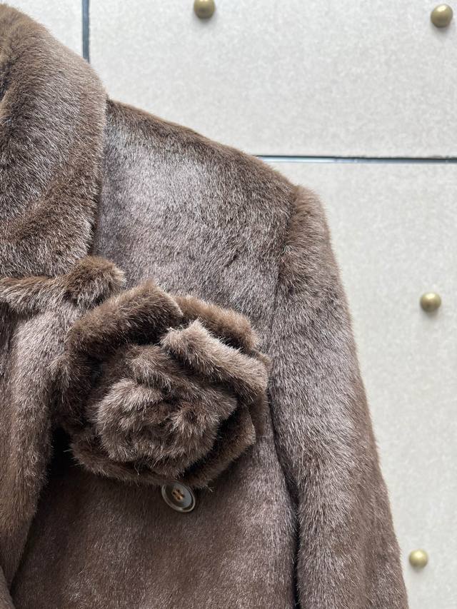 Corsage-embroidered fur coat! Smooth fiber plush fabric, delicate and soft to th