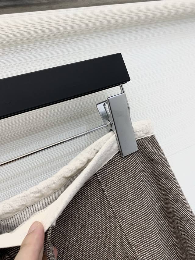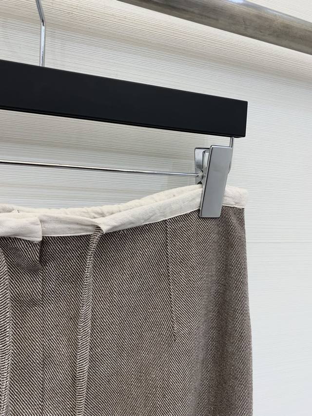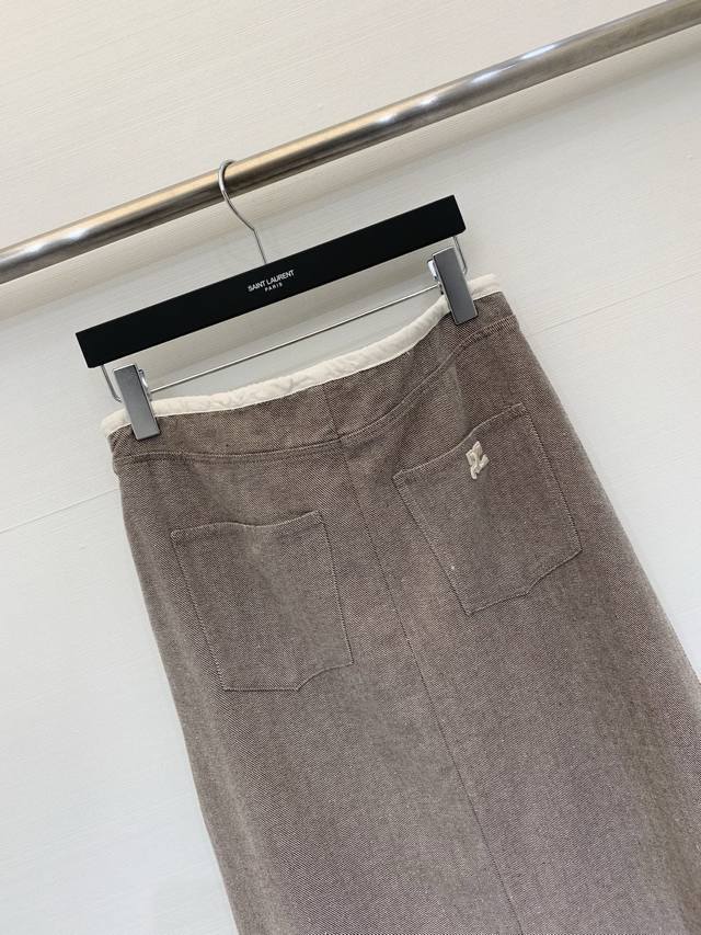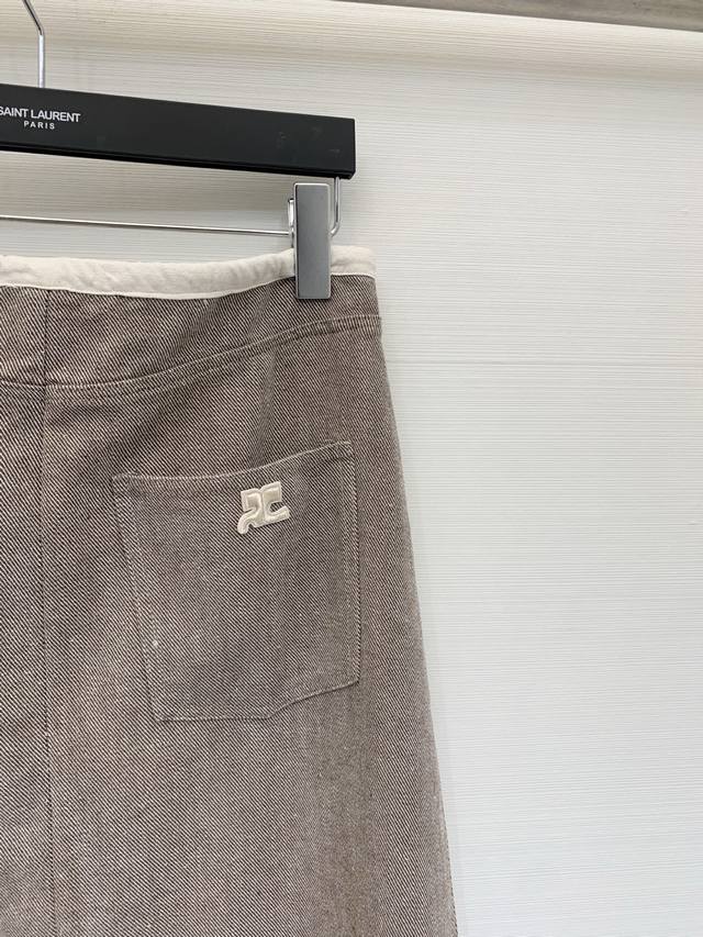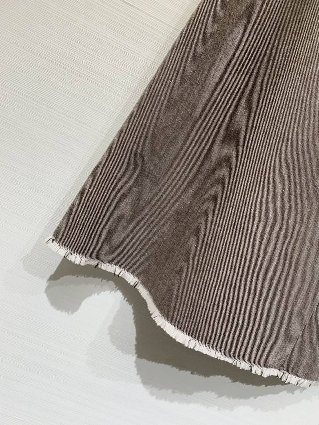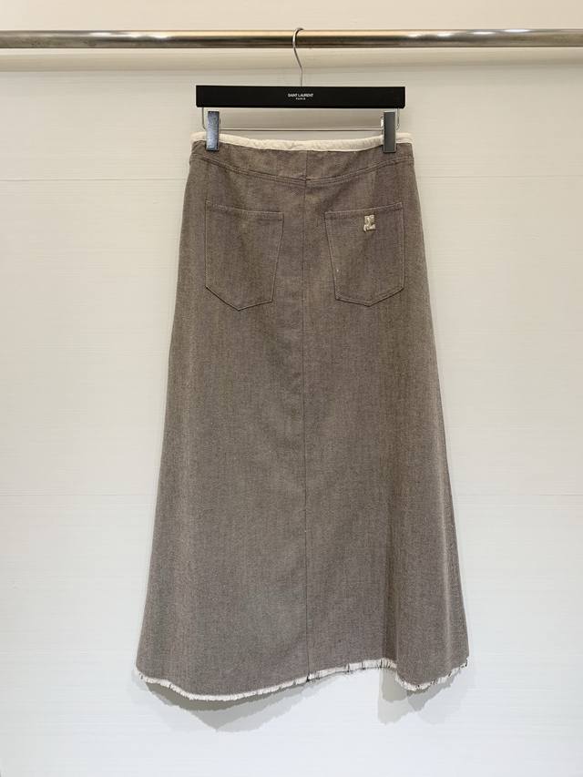 Courreges 26 Early Spring New Light Brown-Gray Fringe Midi Skirt. Made from a superfine cotton blend fabric with a delicate texture, it presents a subtle, mottled look. The high-waisted A-line silhouette with a flowing drape flatters the figure, while the flared skirt adds a touch of elegance. Sizes: S, M, D, D