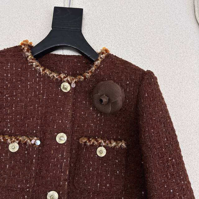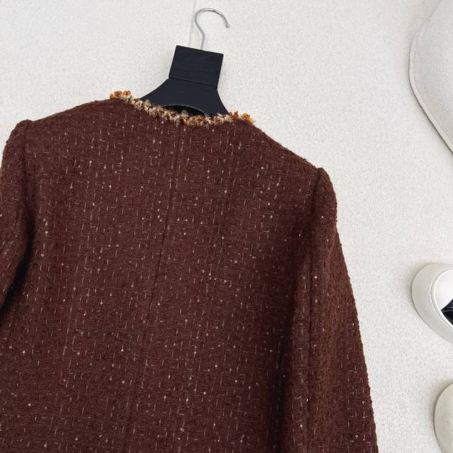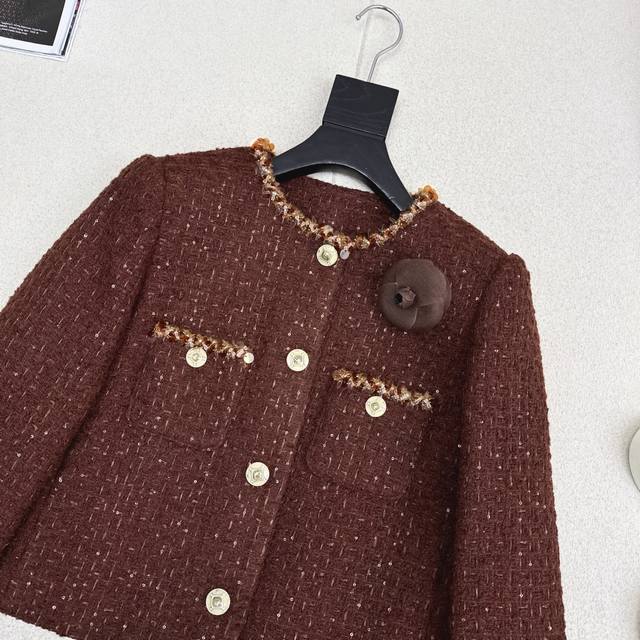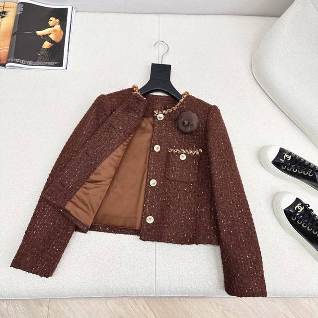 C's 25Ss Autumn/Winter Newest Chanel-Style Woven Tweed Jacket. Exquisite high-quality woven fabric, even more beautiful in person, with a three-dimensional texture and exquisite feel. It exudes a noble temperament. Custom-made 3D tailored cut, incredibly slimming, highly wearable, and even more stylish. A French socialite style, elegant and sophisticated, a must-have for wealthy heiresses. Available in stock in sizes S, M, and L. Size S: Shoulder width 37cm, Bust 96cm, Length 50cm. DDD