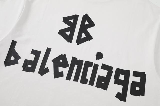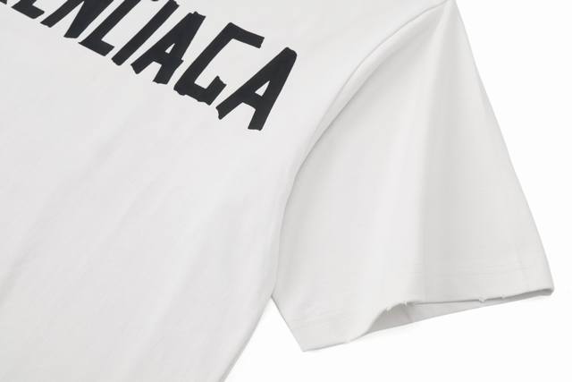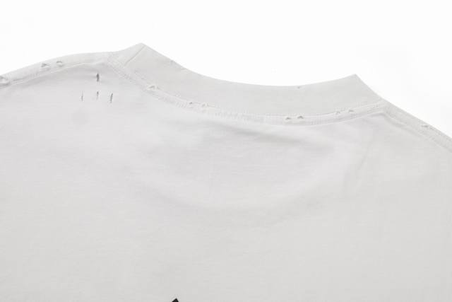 Tape style masking paper effect printing distressed and worn short-sleeved T-shirt for men and women