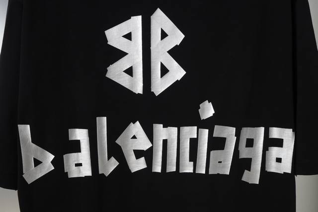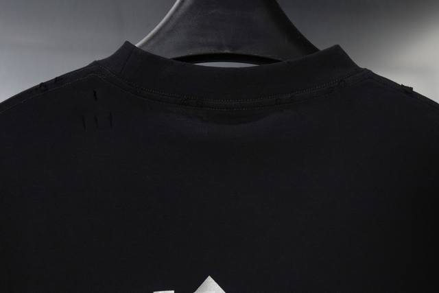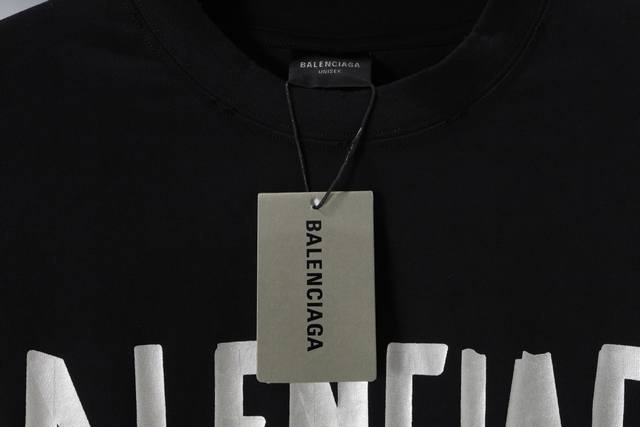Tape style masking paper effect printing distressed and worn short-sleeved T-shirt for men and women