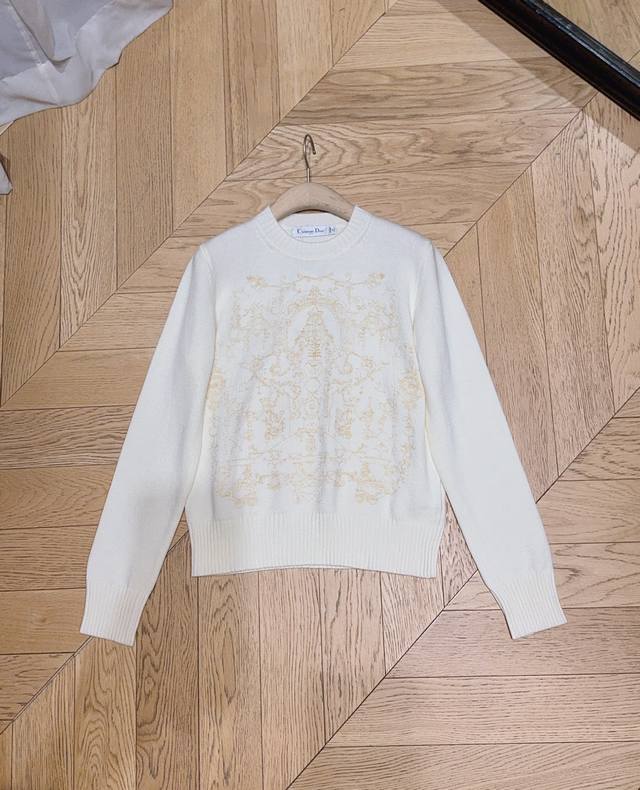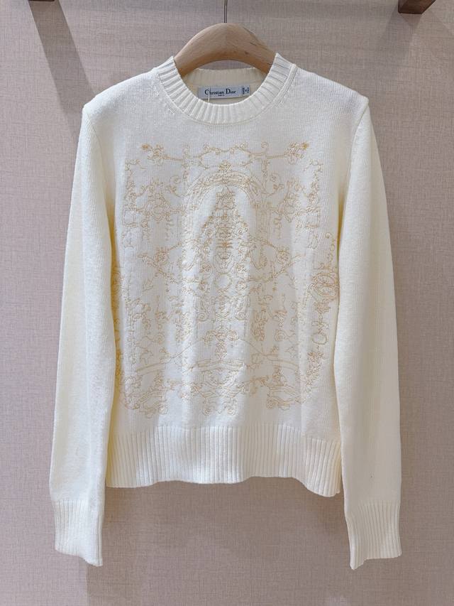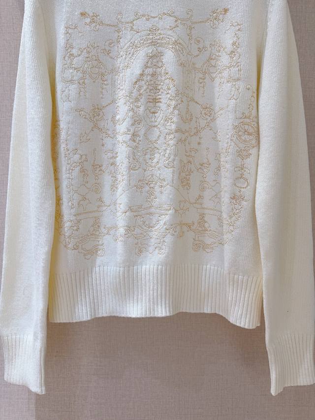 D Brand 2025 Autumn/Winter New Arrival DDD Gold Embroidered Sweater, round neck design, loose fit, soft and warm, super comfortable for autumn and winter wear. The apricot base with gold embroidery is exquisite and artistic. DDD Comfortable and flattering for all body types, it looks great with jeans or skirts. DDD Sizes: S, M, L DDD