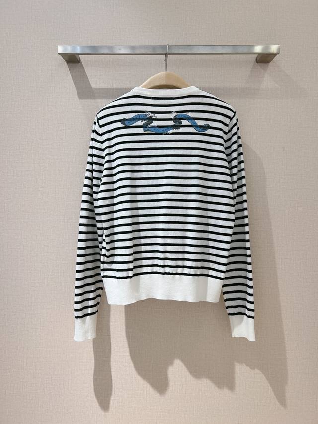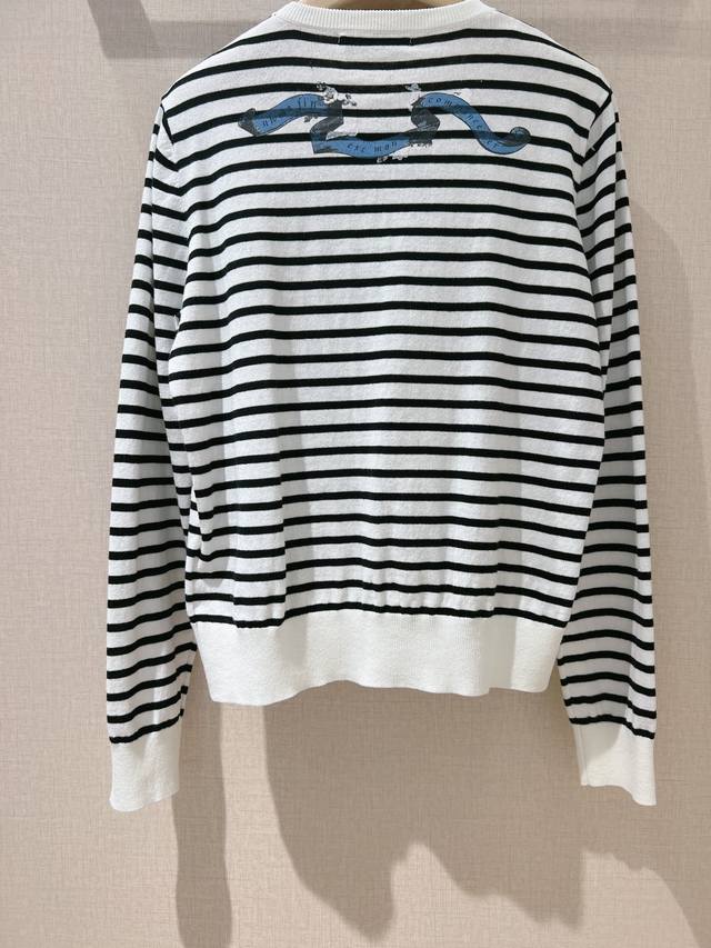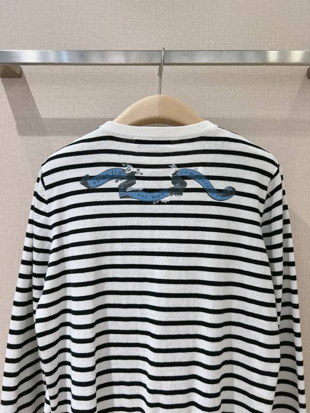 D Brand 2025 Early Spring Striped New Top Recommendation DDD Round Neck Striped Print Star Pullover DDD Long Sleeves with Exquisite Ribbed Edges, Black and White Stripes Intertwined, Floral and Vinylar Elements Combined on the Chest, Signature Five-Pointed Star Pattern, and Thumbs-Up Ribbons on the Front and Back, a Very Stylish and Gentle Style, Can Be Worn Alone or Layered, Instantly Attractive, 1:1 Quality Compared to Department Stores, 30% Laine, 70% Cotton, Soft Fabric, Absolutely Stunning on the Skin, DDD Sizes: S, M, L, Df1059 DDD