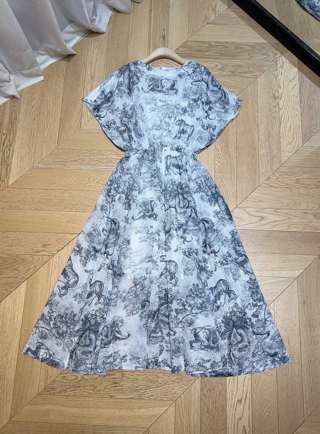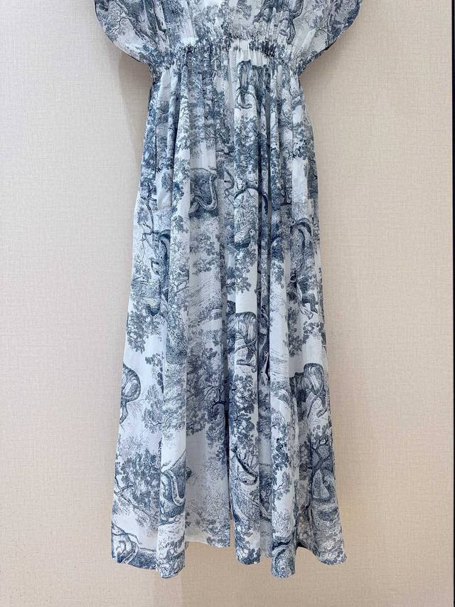 D Brand 25 Cruise New Fashion Item DDD Pure Cotton Off-the-Shoulder Dress DDD Blue and white sketch forest animal print, loose batwing sleeves cleverly conceal arm lines, elastic waist high waist to outline a graceful figure, two side pockets, retro animal print, showing an elegant classic style DDD Sizes: SmlXL, K250418, DDD