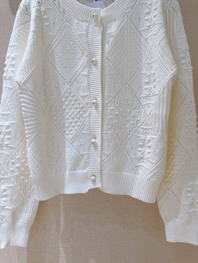 D Brand New Hollow-Out Knit Cardigan DDD Jacquard Knit Cardigan, featuring a diamond-patterned hollow-out design, three-dimensional jacquard weave, and pearl button embellishments. Soft and skin-friendly, simple and elegant, it's easy to wear for everyday commuting or dates. Practical and stylish, you won't regret buying it! Sizes: S, M, L, Df1111 DDD