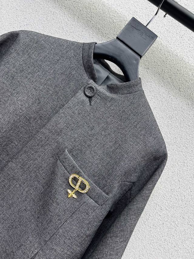 D grey suit jacket with brooch, elegant and versatile, sweet and age-reducing, h