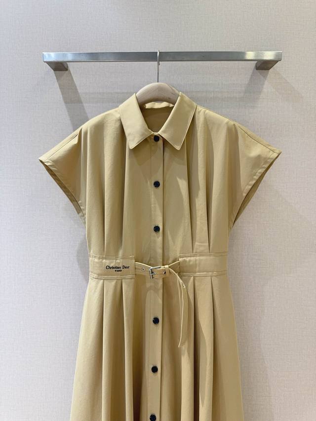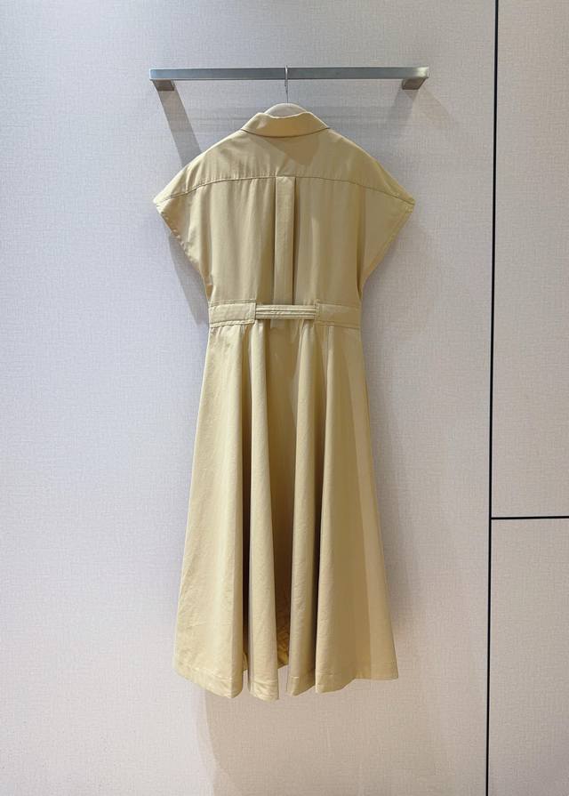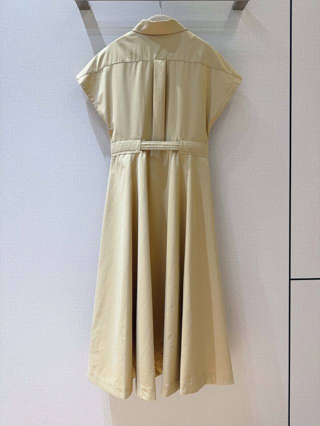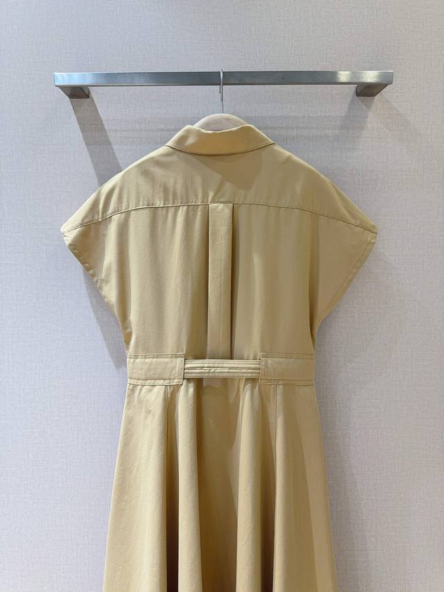 Solid color lapel and cuffed sleeve dress! Classic lapel and high waist design, made of expanded cotton, with pockets on both sides, flared skirt cut at the hem, decorated with exclusive metal buttons and letter bee embellishment on the waist, creating an elegant and extraordinary shape