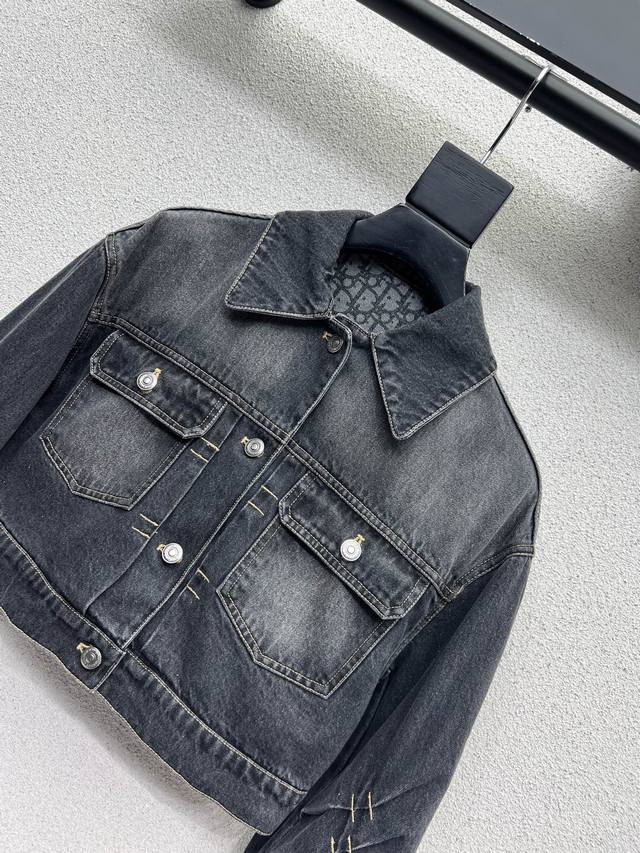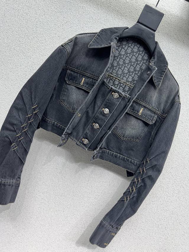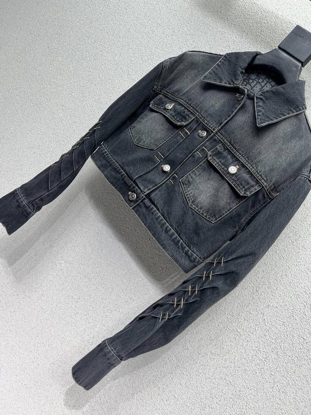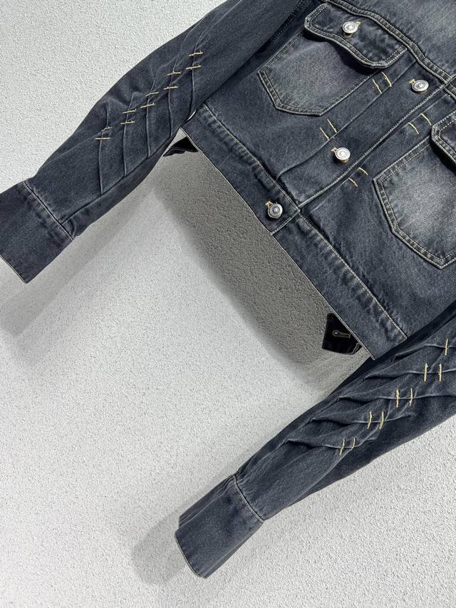 D series short denim jacket with distressed effect. Plain denim looks great. A complete collection of versatile, worry-free, clean-feeling denim. A must-have! Comfortable washed denim with a distressed, fermented look. High-quality sizes S, M, L, and L.