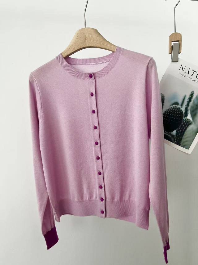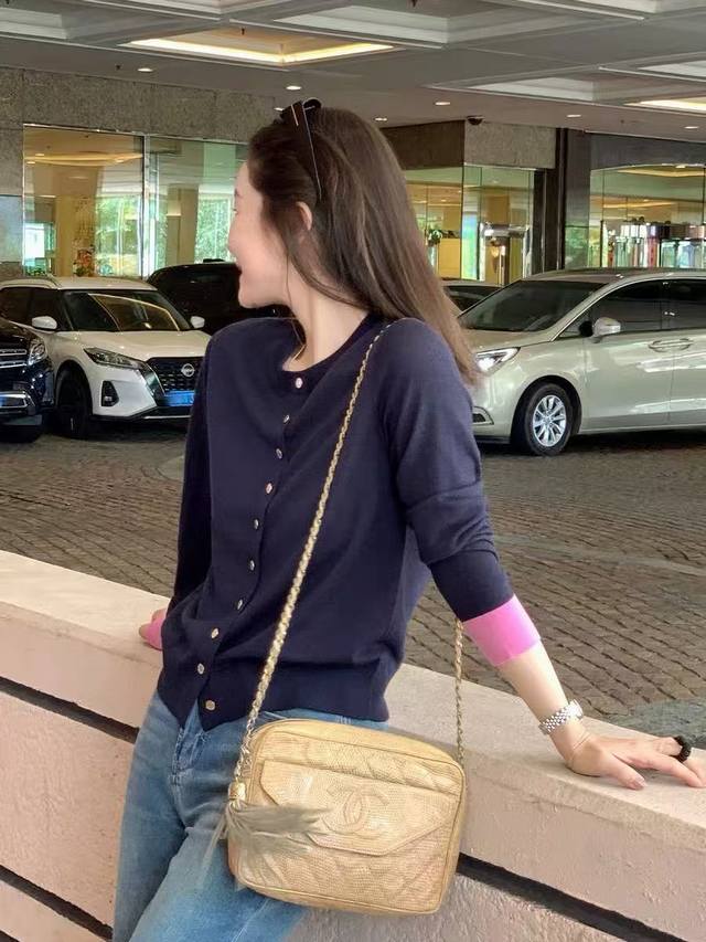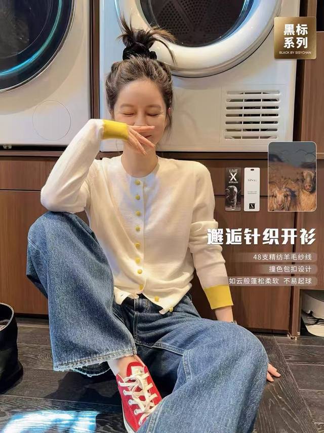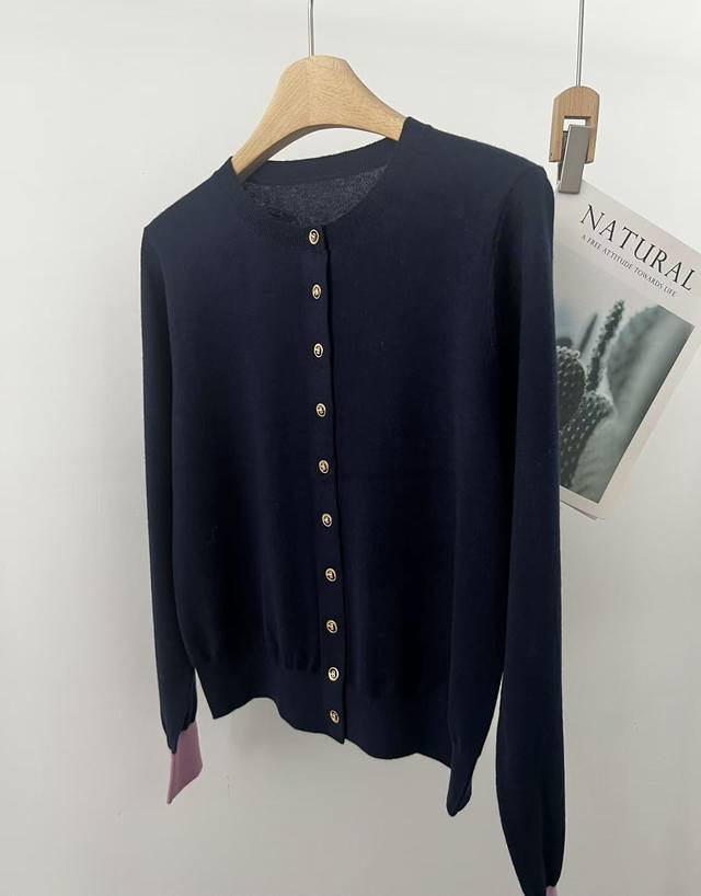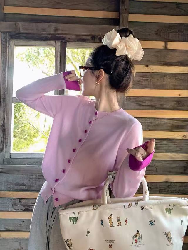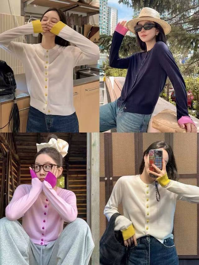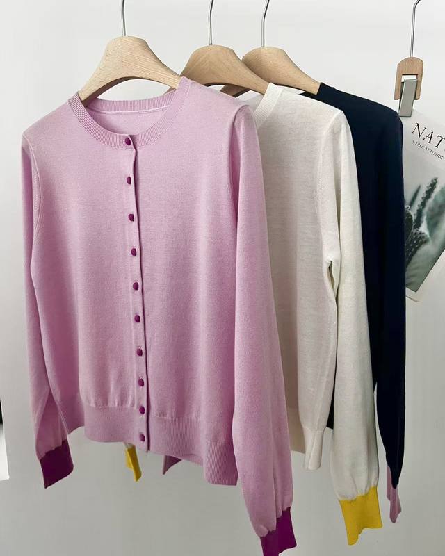 Design sense contrast color retro round neck knitted top inner wear fashionable loose slim sweater cardigan one size fine wool
